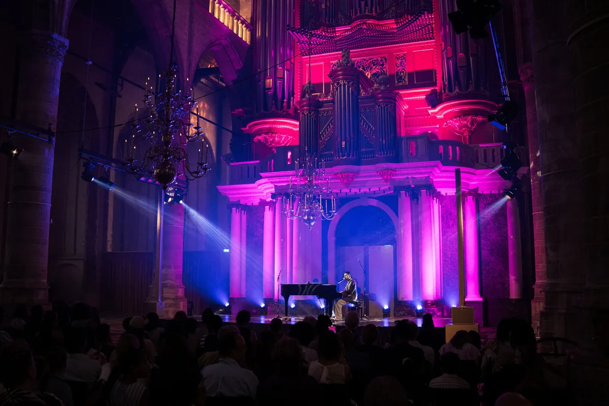 Vanachter de vleugel kijkt de zanger regelmatig op naar het in eigen woorden ‘’intimiderende instrument’’, waarachter Matthijs van der Wilt het grootste gedeelte van de avond schuilgaat. Hoog boven het publiek temt hij met precisie het reusachtige orgel, waarmee hij de reputatie van het instrument ver voorbij de kerkelijke associatie brengt. "We staan in de oudste kerk van Rotterdam met het grootste orgel van Nederland," vertelt Matthijs. "We zijn trots op deze setting."