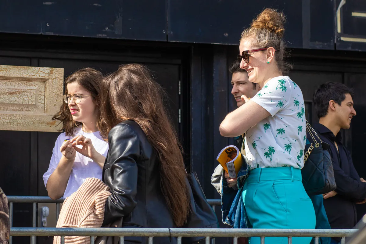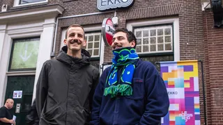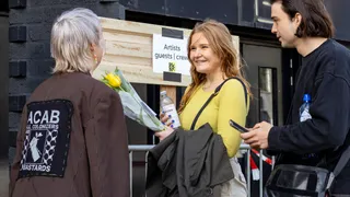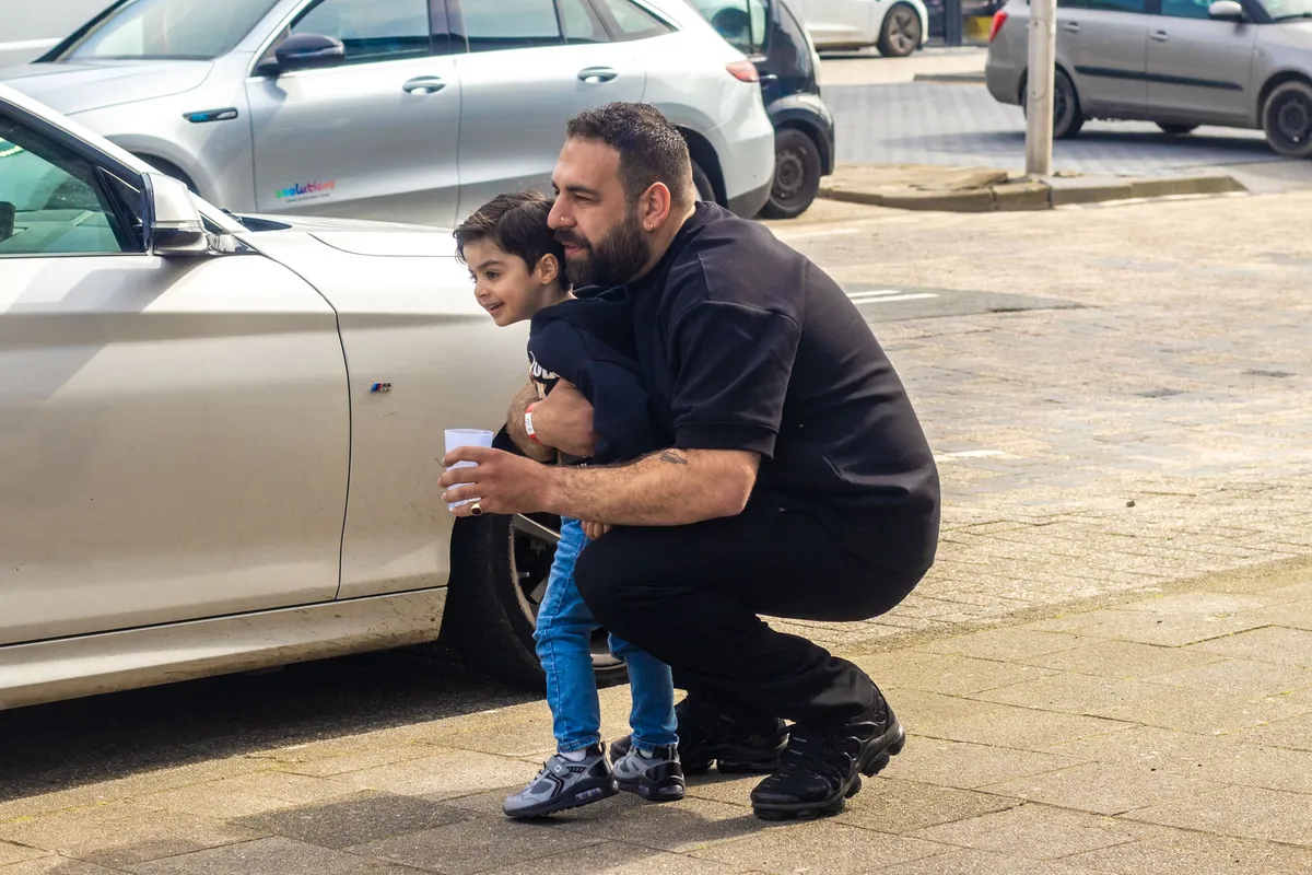 Bij aankomst is er een moment van verwarring: er is geen rij te bekennen! Is dit wel het goede adres? Toch wel, blijkt, want er staat een kluit familie en bijzondere gasten voor de ingang. Omar Waseq loopt vrolijk rond en begroet alle bekenden die hij ziet; oma’s schudt hij de hand, kleine kindjes gaan als Simba de lucht in. Het personeel is druk in de weer met linten en hekken, dus we wachten nog even. Eigenlijk is het ook veel te lekker weer om binnen in een club te zijn.