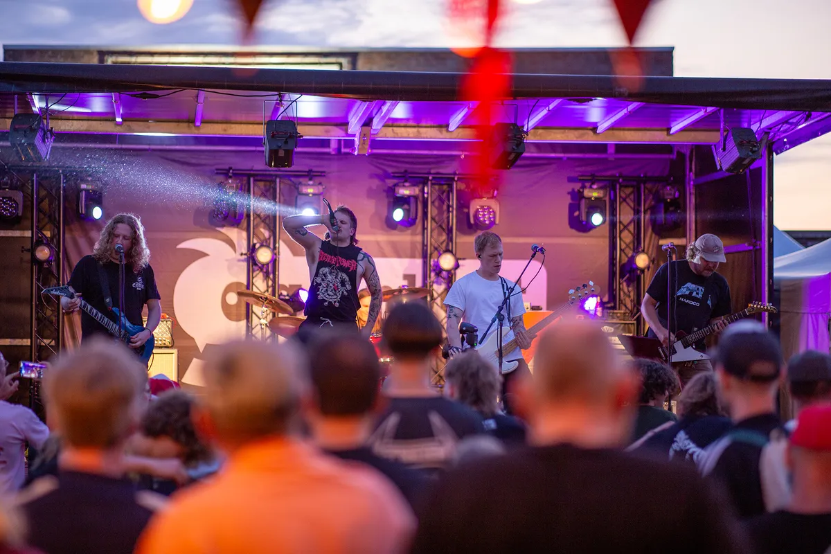 Rond het middaguur begint het festivalterrein van Geinbeat vol te stromen. Wat meteen opvalt zijn de verschillende mensen die er rondlopen. Tussen de oude skaters lopen jonge hippies, terwijl metalheads samen met alternatievelingen dansen. Een van de oorzaken is de grote variatie aan acts. Zo begint de dag relatief rustig met de band Schemer en zangeres Iris Jean, maar eindigt met wilde punk van State Power.