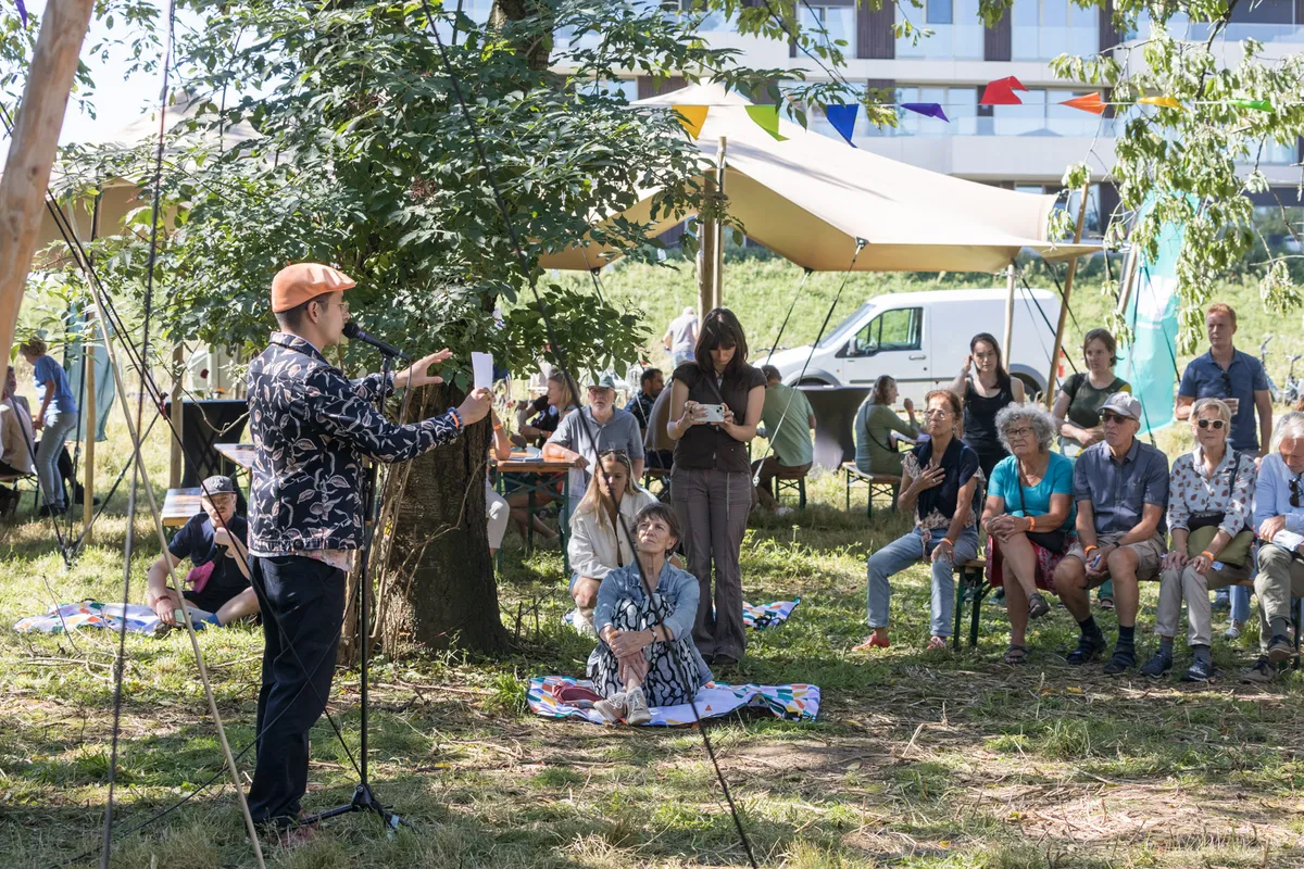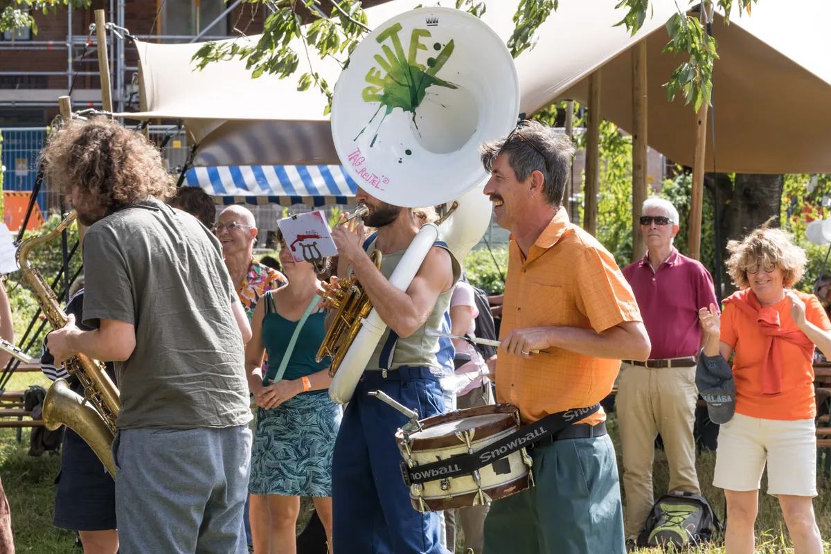 In zijn openingswoord op zondag verwijst ook wethouder Noël Vergunst naar deze verrassingen. Hij volgt het festival al jaren en is telkens getroffen door de mooie plekken die behouden worden in het snelgroeiende Nijmegen Noord. Simon Mamahit, stadsdichter, legt dit gevoel vervolgens nog eens treffend vast in twee gedichten. En daarna is het de beurt aan Misprint, een jonge Nijmeegse band die het Tuinfeest in de Kersengaard voor hun rekening hebben genomen. Naast de Warmoes is dit een plek waar de hele dag activiteiten zijn voor jong en oud. De meer avontuurlijk aangelegden zwermen na de opening uit naar een van de andere twintig locaties voor een zonnige zondagmiddag vol verrassende culturele pareltjes.
