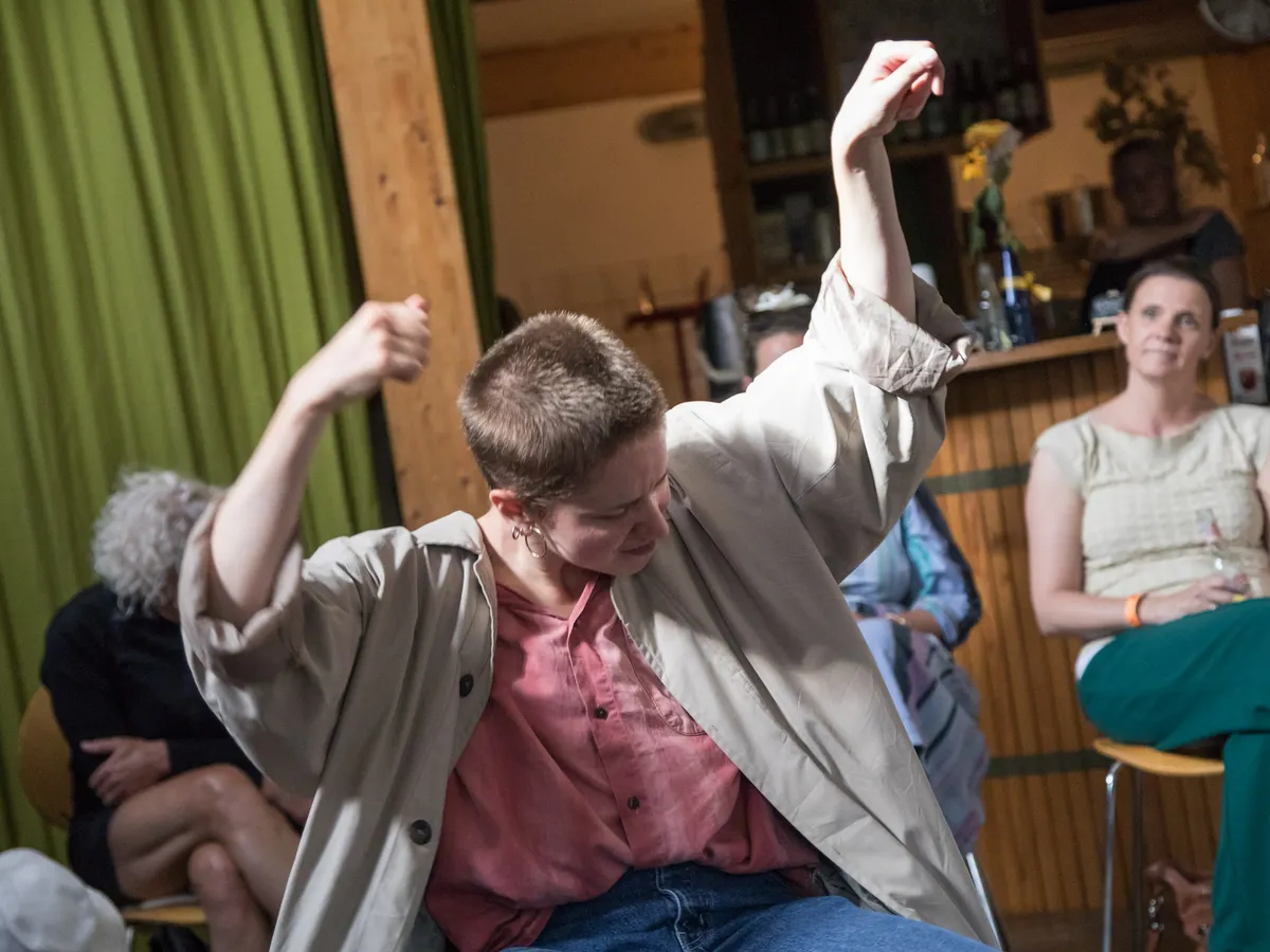 Landgoed Doornik, fort Knotsenburg, het Witte Kerkje en de verborgen groenplekjes bieden elk op hun eigen manier een natuurlijk decor van toegevoegde waarde aan dichters, dansers en performers. Traditiegetrouw duurt Festival de Oversteek twee dagdelen, die telkens op een andere manier verdeeld worden. Ditmaal waren het de zaterdag- en de zondagmiddag. 3voor12 Gelderland was op zondag aanwezig en heeft geprobeerd zoveel mogelijk acts te bezoeken maar vanwege het enorme aanbod en de parallelle programmering is het uiteraard niet gelukt om alles mee te maken.