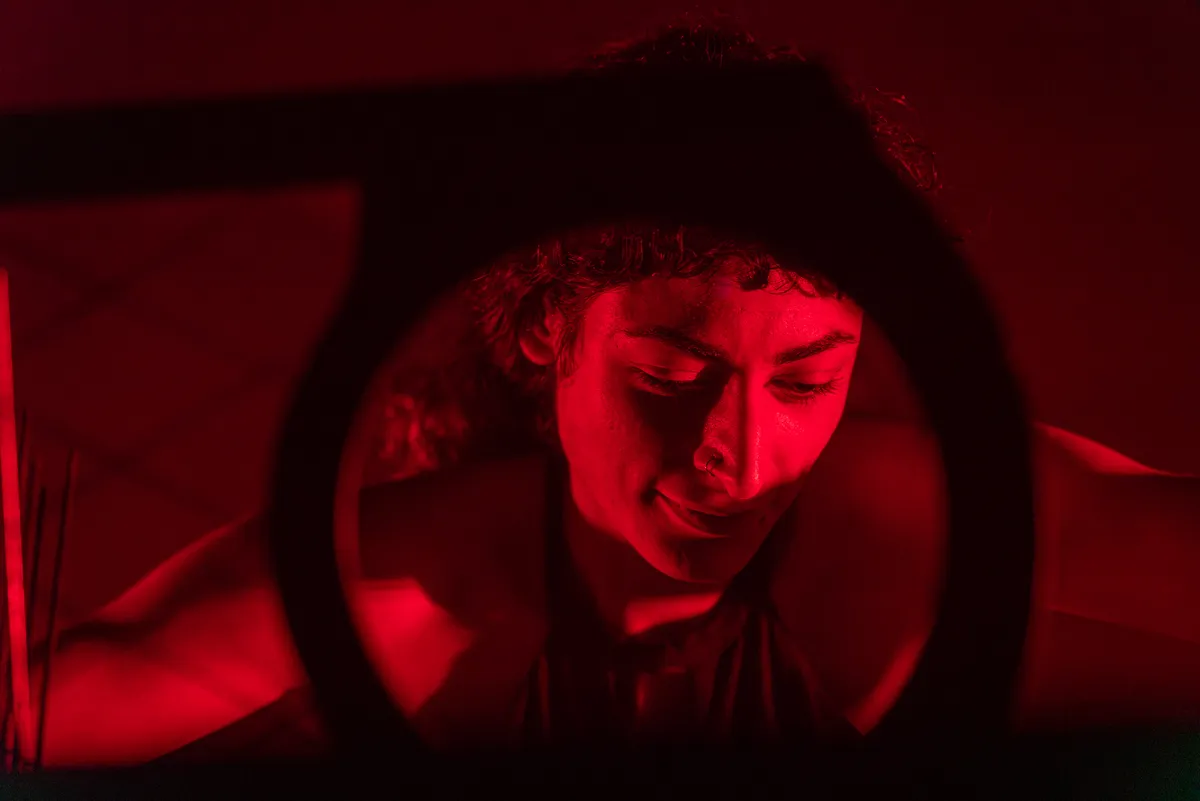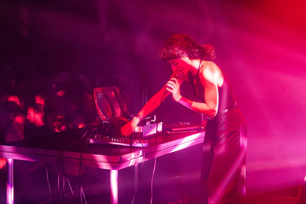 Na LØU duurt het even voordat NÂR haar set heeft opgebouwd. Het contrast tussen veelvoud en eenvoud op het podium kan bijna niet groter. Was bij LØU het hele podium gevuld, bij NÂR is het juist het tegenovergestelde. Ogenschijnlijk heeft ze slechts een tafel met wat obscuur ogende materialen met daarop een metalen apparaat - dat een overlap lijkt te hebben met een uitvergrote metalen klankkast van een viool -, iets wat lijkt op een brok steen en duidelijker zichtbaar een microfoon en een strijkstok. Dat dit tot iets totaal anders zou leiden is evident. Zonder op elk onderdeel van de tafel in te gaan, kun je zeggen dat NÂR een repeterend en afwisselend mantra aan resonanties, drones, beats en stemmen maakt, omlijst met minimale visuals die bestaan uit rode lampen. NÂR is in alles een beleving om in jezelf te keren, de techniek los te laten en fysiek mee te drijven op het hypnotiserende audio aspect van de set. Dat Uncloud een verzameling van coherente contrasten is, is nu al duidelijk en met de overgang naar Iglooghost wordt dit onnavolgbaar en kloppend duidelijk. Ook hier is de fysieke set minimaal van karakter maar in uitvoering een totaal samenhangende chaotische verzameling van GEN Z-sounds, breakcore beats, abstracte visuals met in het midden de fysieke perfomances van Iglooghost zelf. Voor wie eind jaren ‘80 heeft meegemaakt: dit was Bez van de Happy Mondays, maar dan met iets te veel koffie op en wél gebruikmakend van een microfoon in plaats van de sambaballen.