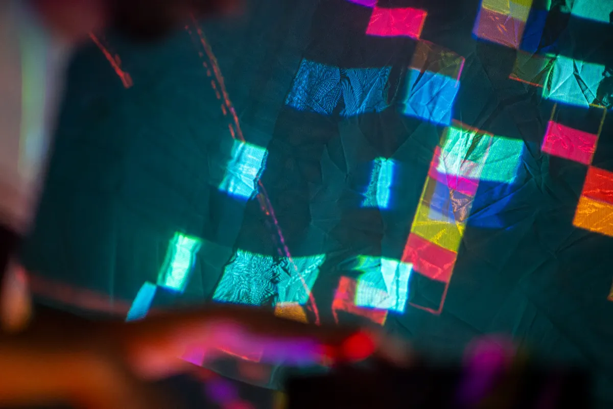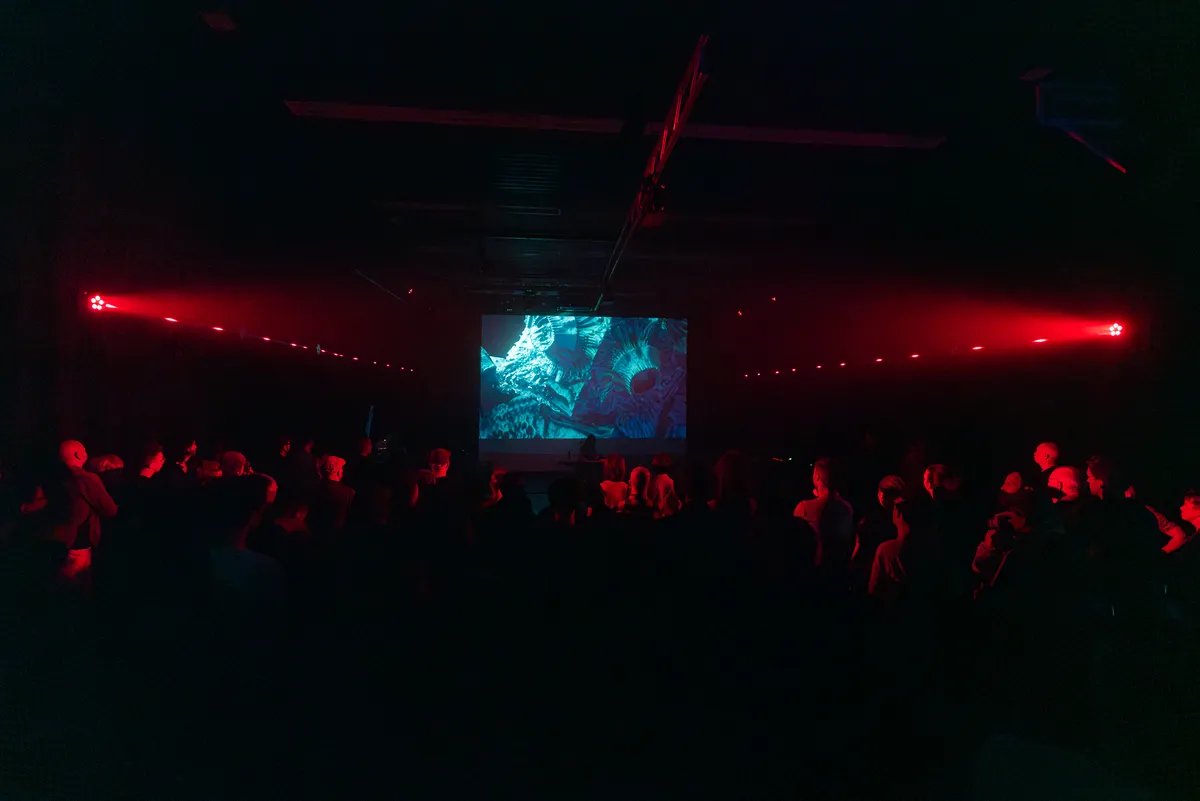 Het weekend wordt afgesloten met een concertavond op zondag in het voormalige PBC. De voormalige sportzaal heeft een totaal ander gevoel dan een dag eerder. Fat Boy’s en klapstoelen zorgen ervoor dat iedereen die dat wil, kan zitten of liggen. Soheil Shayesteh, Kristia Michael en Rashin Teimouri beginnen de avond. Door subtiel spel tussen sopraan Kristia en muzikant Soheil ontstaat een zeer gevoelig, eigentijds klassiek stuk dat ondersteund wordt door de eveneens door Soheil bespeelde elektronica. Uiteraard ontbreekt de V van de AV hierin niet. Rashin smelt fysiek gemanipuleerde vloeistofprojecties samen met de elektronische visuals die Soheil klaarblijkelijk ook nog weet te bespelen. Een bijzonder begin van wat een fijne zondagavond wordt. De vanuit Berlijn opererende AV-artiest Perila zit aan de linkerkant van het scherm aan een klein tafeltje en verzorgt daar een lange set met introspectieve soundscapes, die wel wat weghebben van Grouper, met visuals. Maarten Vos sluit het festivalweekend passend af met een erg mooi en dynamisch optreden, waarbij Jacco Schilp (samen met Skander Jaïbi initiatiefnemer van Uncloud) het bijpassende licht verzorgt.