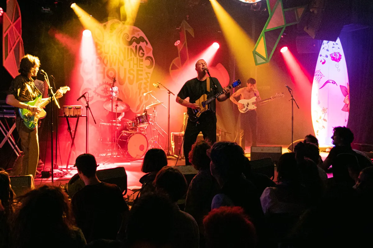 Zaterdag 4 juni mocht het dak eraf in Mezz met een nieuwe editie van Burning Down The House. Geen wedstrijd tussen België en Nederland zoals de voorgaande dag in de Nations League, nee gewoon gebroederlijk raar rocken en avonturieren met Bongloard, Iguana Death Cult en Druiprek uit Nederland en The Germans en Gameboyz II Men uit Vlaanderen. En… een vibratorrace in het Popcafé.