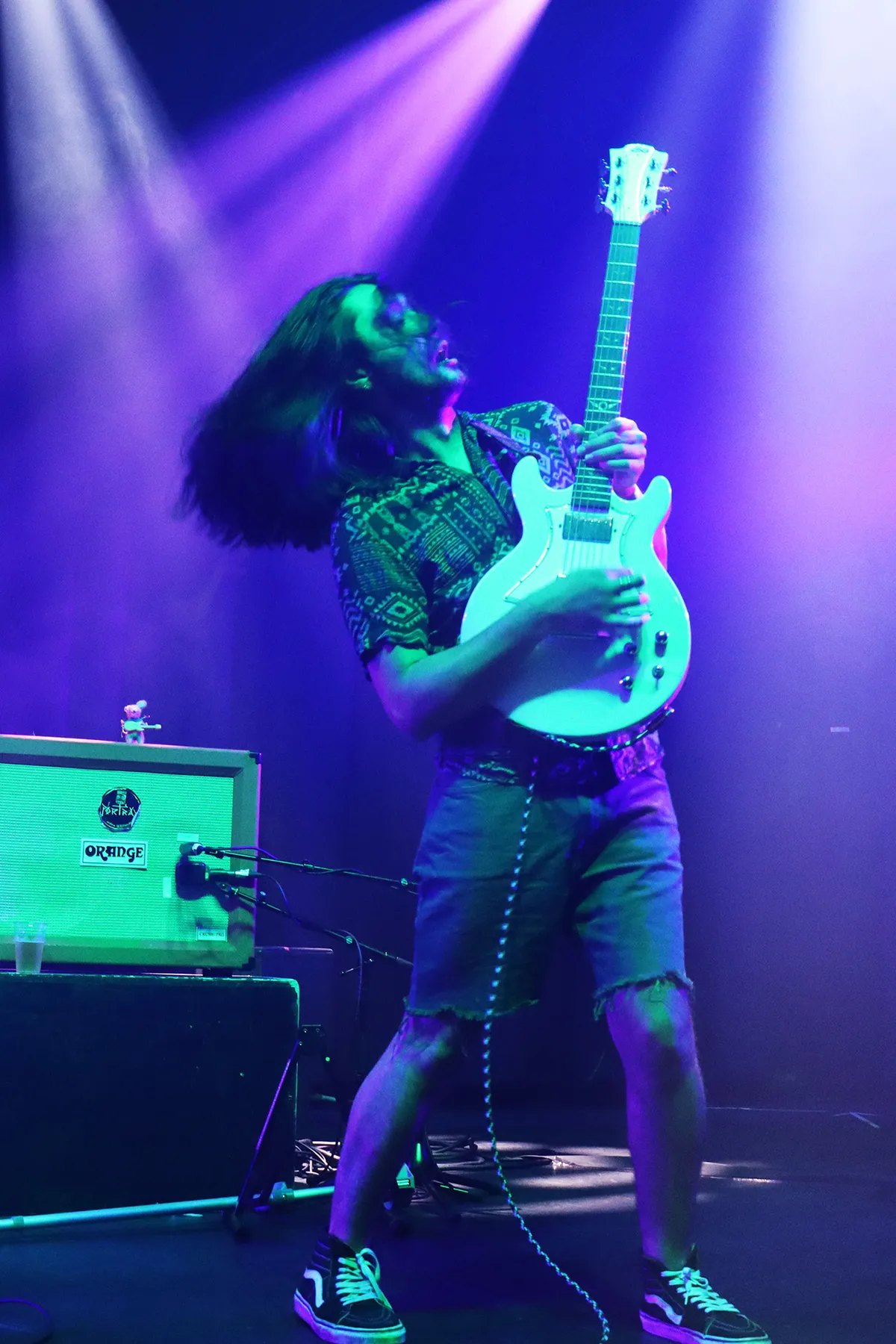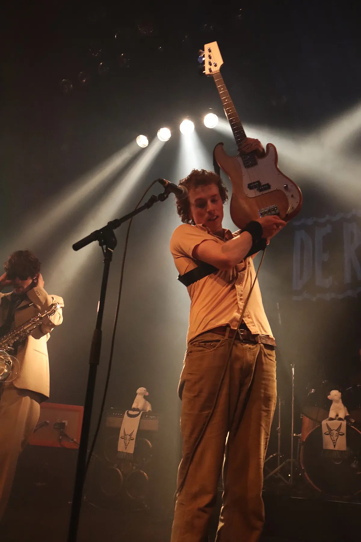 Hoewel de zanger niet veel praat tussendoor en daardoor de stiltes tussen de nummers net wat te lang duren, maakt dat het publiek niet uit. Ze gaan los op de grunge rock met vleugjes punk en doorbassende saxofoon. Binnen no time ontstaat er moshpit. Hoewel rustige nummers worden afgewisseld met een doorstampende bas en drum, zijn het juist de rocknummers die het publiek voor het laatst wakker schudden in Roosje vanavond. Opeens verschijnt de saxofonist in het midden van een Wall of Dead boven het publiek uit. En ook tijdens het laatste nummer, wat ze opdragen aan Sanda Dia en wat daarnaast gaat over mensen die altijd overal mee weg komen, is de gitarist opeens het middelpunt van een cirkelpit die de helft van de uitverkochte zaal beslaat.