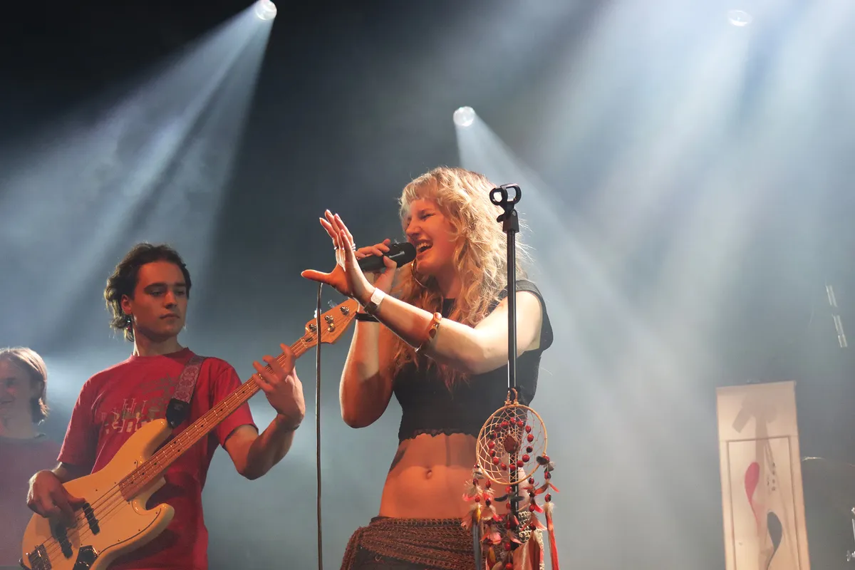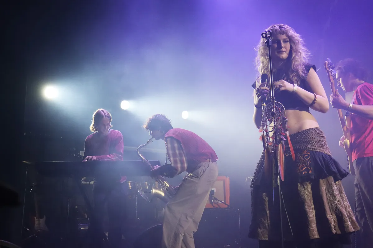 Het is nooit makkelijk om te beginnen. Het publiek wordt gelokt met een jazzy drum en warme klanken van een saxofoon. Nadat de bandleden één voor één op het podium verschijnen is het na het muzikale intermezzo aan de zangeres om onder luid gejuich ook plaats te nemen. Ergens doet ze denken aan een combinatie van Stevie Nicks en Florence van Florence and the Machine. Maar dan met een heel eigen stemgeluid.