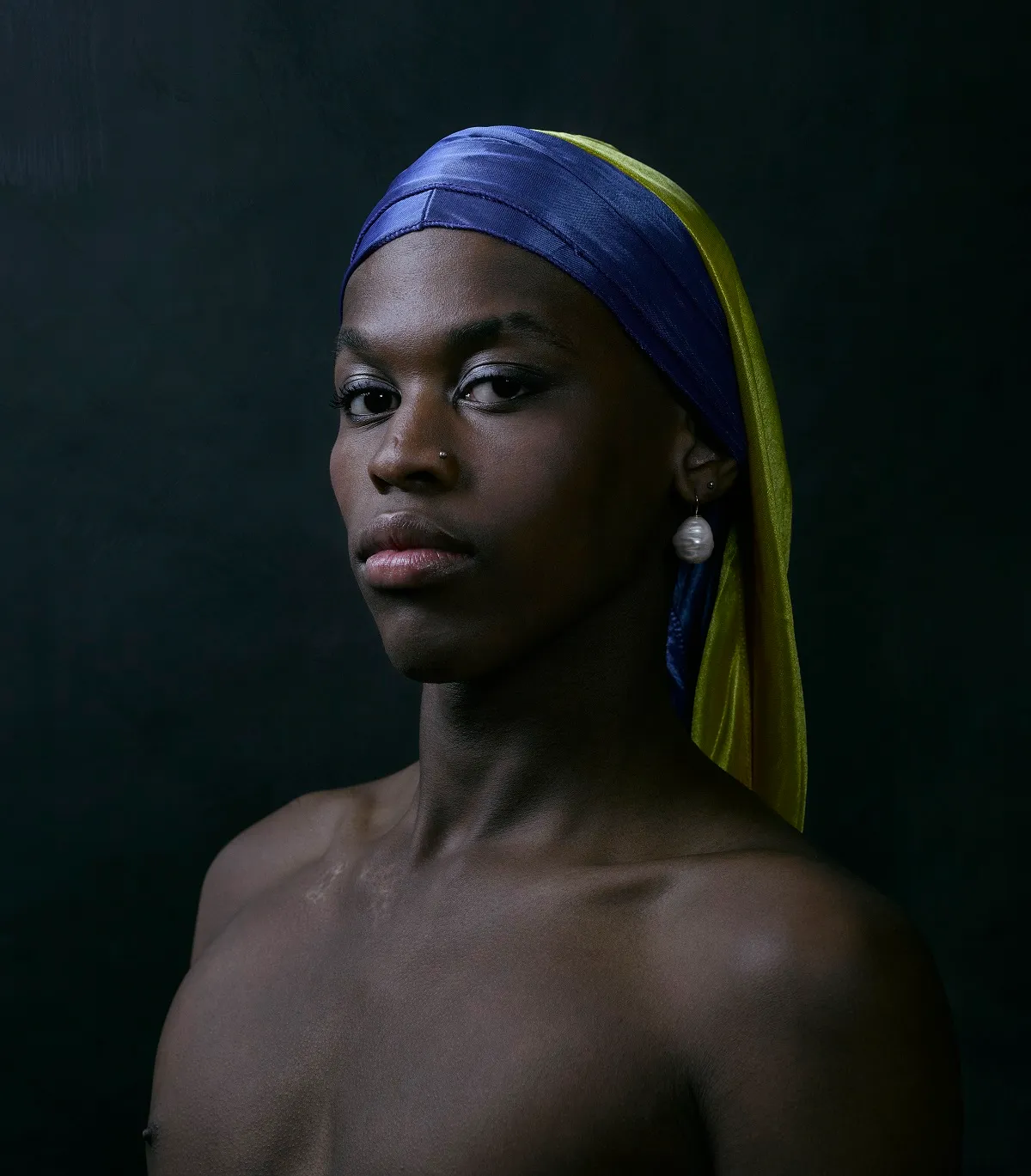 Ik moet denken aan een prachtige foto die ik laatst voorbij zag komen. In samenwerking met Erikjan Koopmans en Saskia Wagenvoort ontstond een nieuwe interpretatie van ‘Meisje met de parel’ van Vermeer met Rowan als model. Een krachtig beeld. “Ik vind het zo vet dat ik zo’n oud schilderij een nieuw leven mocht geven. Ik heb een donkere huidskleur, ben queer, sta voor mezelf en weet wat ik wil. Dat ik dat zo mag neerzetten is niet alleen voor mij een overwinning maar ook voor zoveel andere mensen uit de black community en de queer community. Mensen kunnen er naar kijken en zien dat alles wat vroeger was, kan veranderen. Daar kunnen mensen in mee gaan en een open blik vormen. Ook voor de toekomst.”