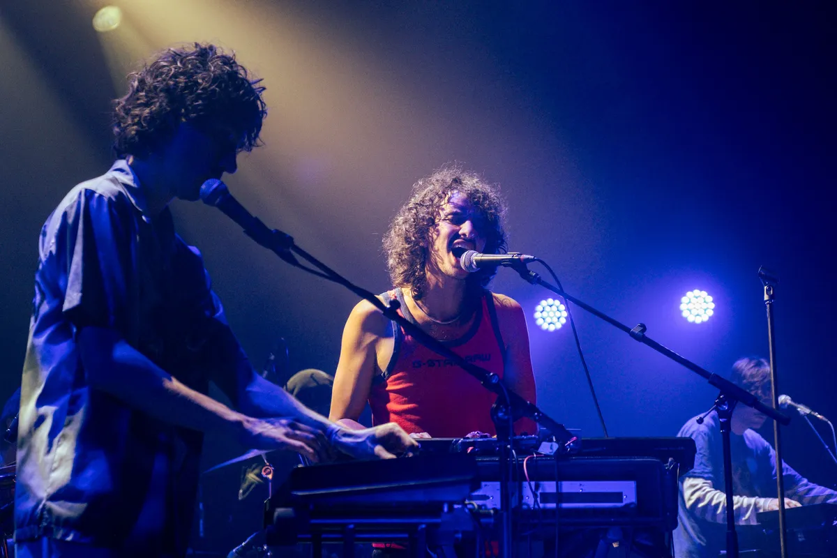 We duiken Pandora in, waar de avond wordt geopend door een act van eigen bodem. De band oogt bij opkomst nog wat verlegen. "Welkom Tivoli, wij zijn Don Melody Club uit Amsterdam", zegt frontman Donald Madjid, terwijl de toetsenist een groovy synthmelodie inzet. Naast een enthousiaste Gen Z’er die vanaf noot één zijn beste dansmoves etaleert, staat de rest van de bezoekers er stijfjes en op veilige afstand bij.