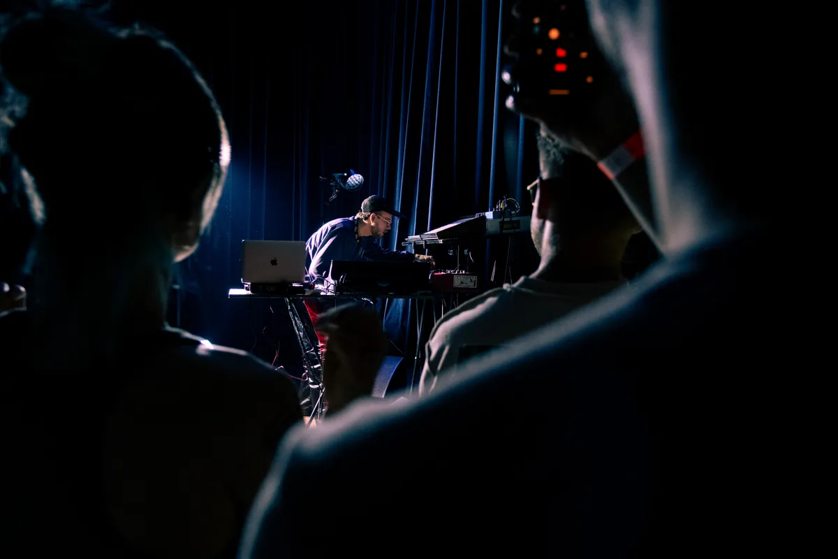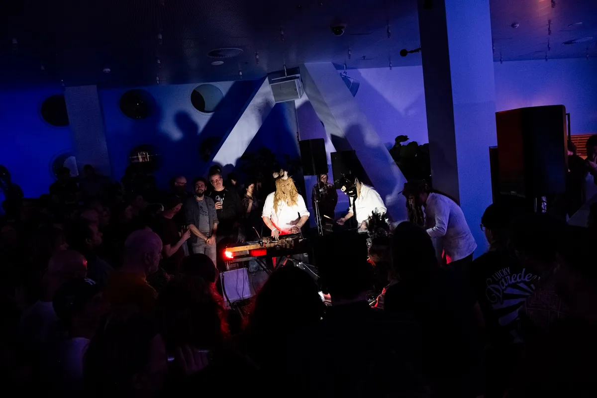 We staan klaar bij Club Nine. Voor de deur staat een kliekje wachtenden. Eenmaal binnen voelt het alsof je een hemelse poort passeert: donker, bomvol, harde elektronische muziek. Hier is het gaande. Op het podium staat de Duitse solo-act Halfpastseven, volledig ingebouwd tussen een wirwar van kabels en instrumenten. Wat hij daar allemaal achter die knopjes doet? Geen idee. Maar het klinkt fantastisch, en de zaal is het er volledig mee eens. “Utrecht, make some noise!”, roept hij terwijl U-vormige handgebaren trots de lucht in gaan. Hij zet een remix van ‘Wanna Be Startin’ Somethin’ van Michael Jackson in en playbackt de woorden speels mee.