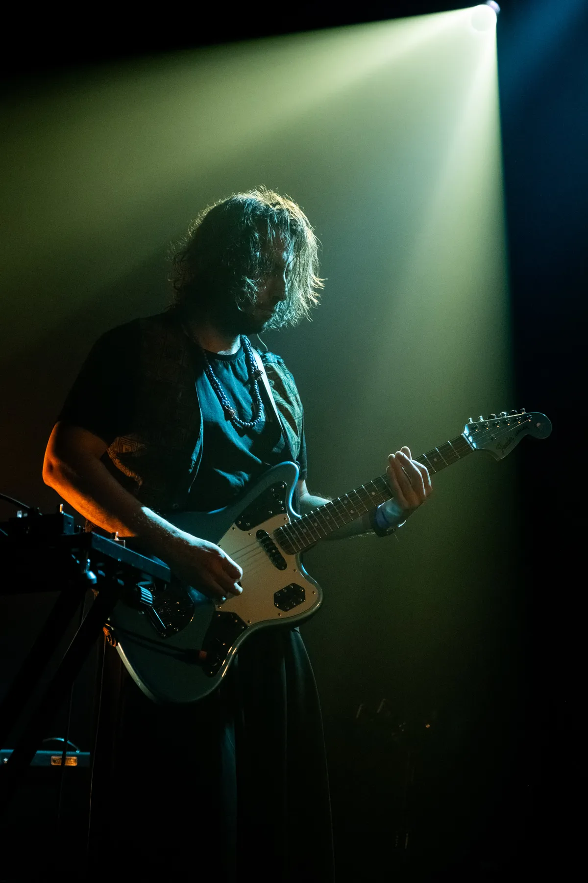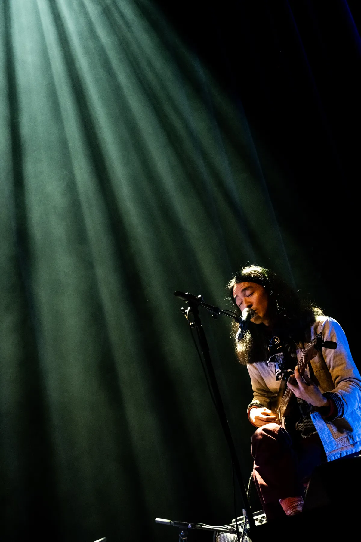 Halverwege staat er iemand op. “Ik vind het heel knap, maar als dit nog een uur zo doorgaat val ik in slaap”, mompelt een licht aangeschoten man nét iets te hard. Hij schuifelt richting de uitgang. Misschien heeft hij gelijk, de muziek van het tweetal heeft ook wel iets weg van een gemoedelijk slaapliedje. Hun recente EP Dream of the Egg (2024) is geïnspireerd op het Japanse kinderboek Yume No Tamago uit de jaren twintig. Het brengt daarmee een kalme atmosfeer die afsteekt tegen de chaotische festivalhectiek. Maar als je door het geroezemoes van in- en uitlopende bezoekers heen kunt luisteren, hoor je een doordacht samenspel. Nash voegt de elektrische gitaar toe, en hun stemmen vallen warm en breekbaar samen. Even voelt de Hertz als een warm bad. Adembenemend mooi en onze persoonlijke favoriet van de avond. Helemaal rozig verlaten we de zaal.
