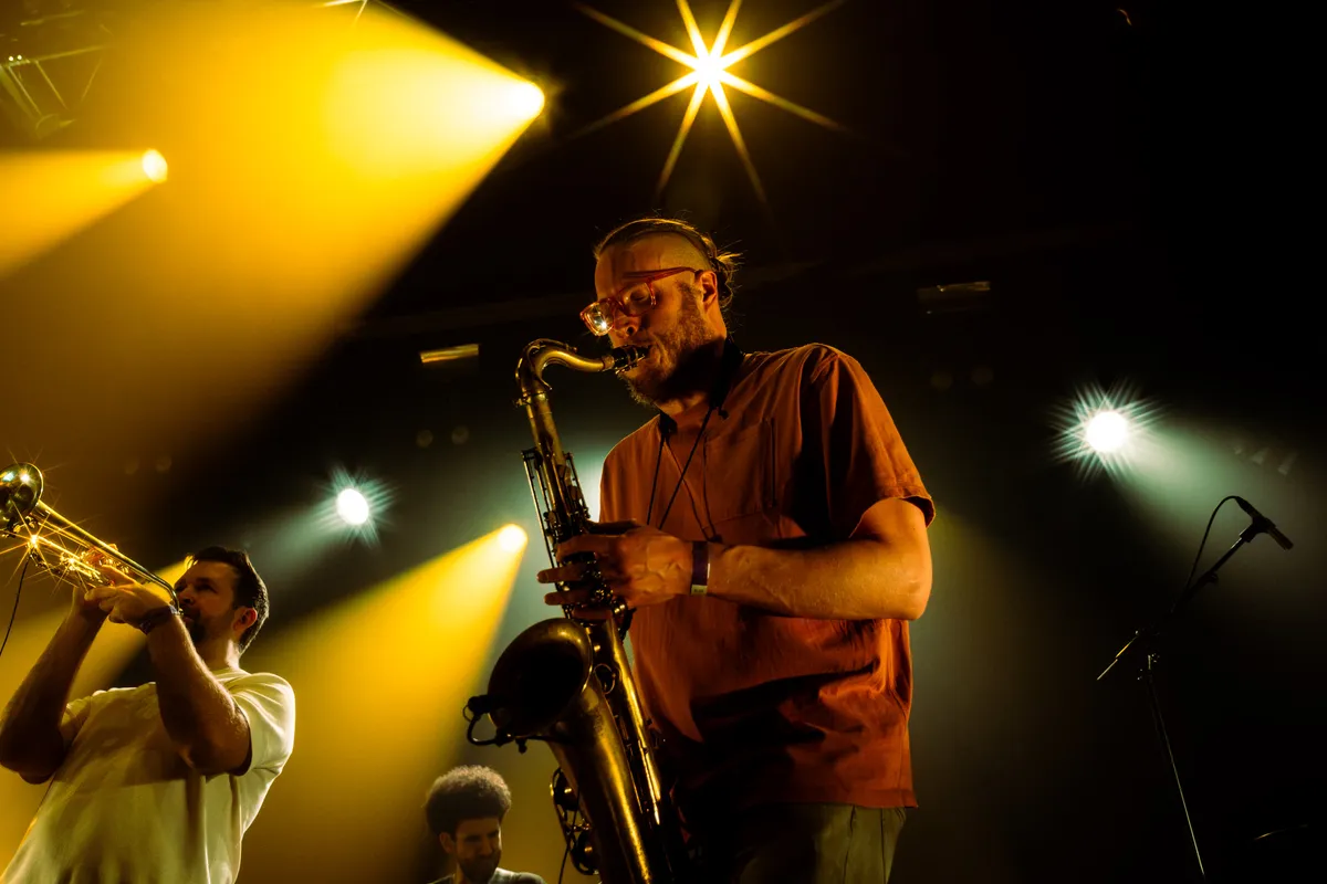 Madjid laat het er niet bij zitten. "Kom allemaal wat dichterbij, we moeten hier een ongemakkelijke ruimte vullen", zegt hij, voordat hij ‘Stilte Voor De Storm’ aankondigt. Een titel die de sfeer in de zaal op dat moment aardig samenvat. De kleinkunstfunk van de Amsterdamse band leunt hoorbaar op de jaren zeventig. In het publiek vooral groepjes vijftigplussers, met hier en daar een jonger gezicht ertussen. Ze knikken goedkeurend op de nostalgische klanken: strak gespeeld, maar nog wat ingetogen.
