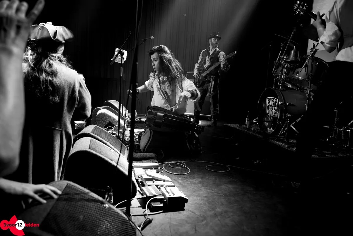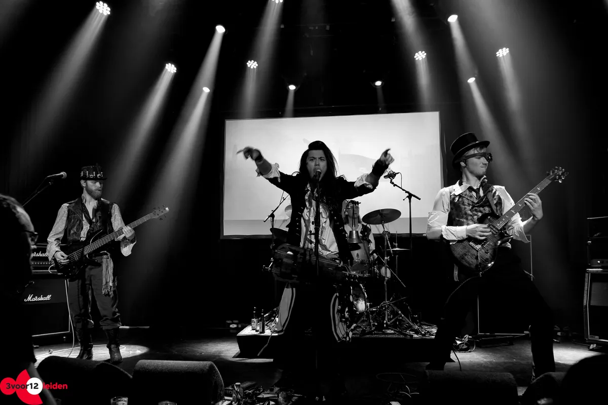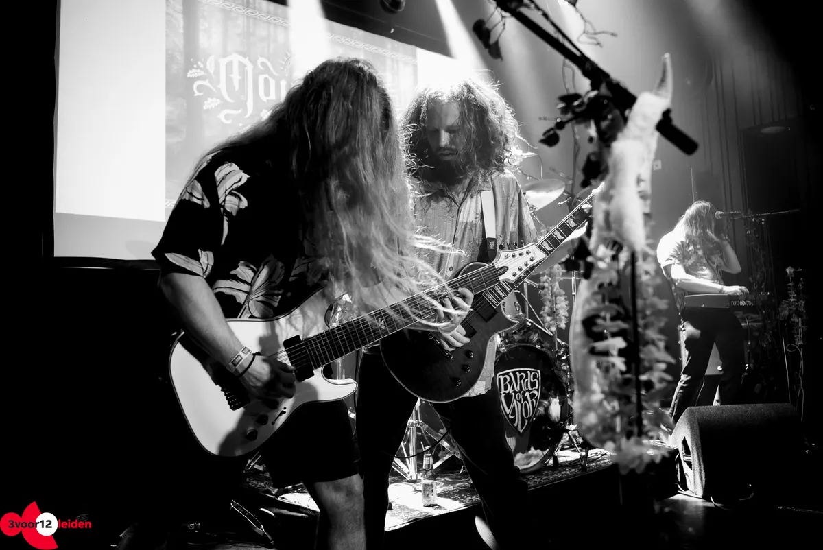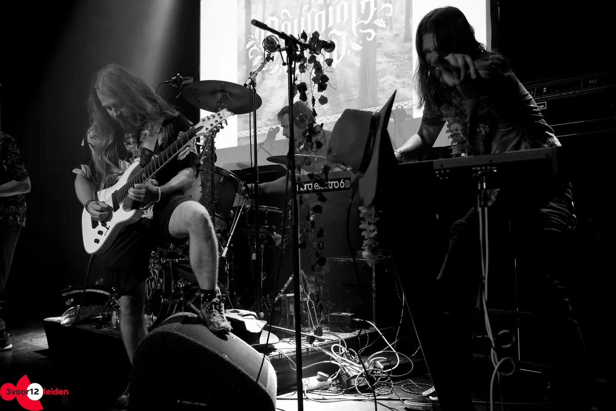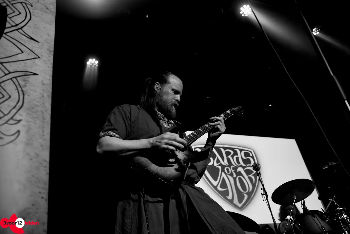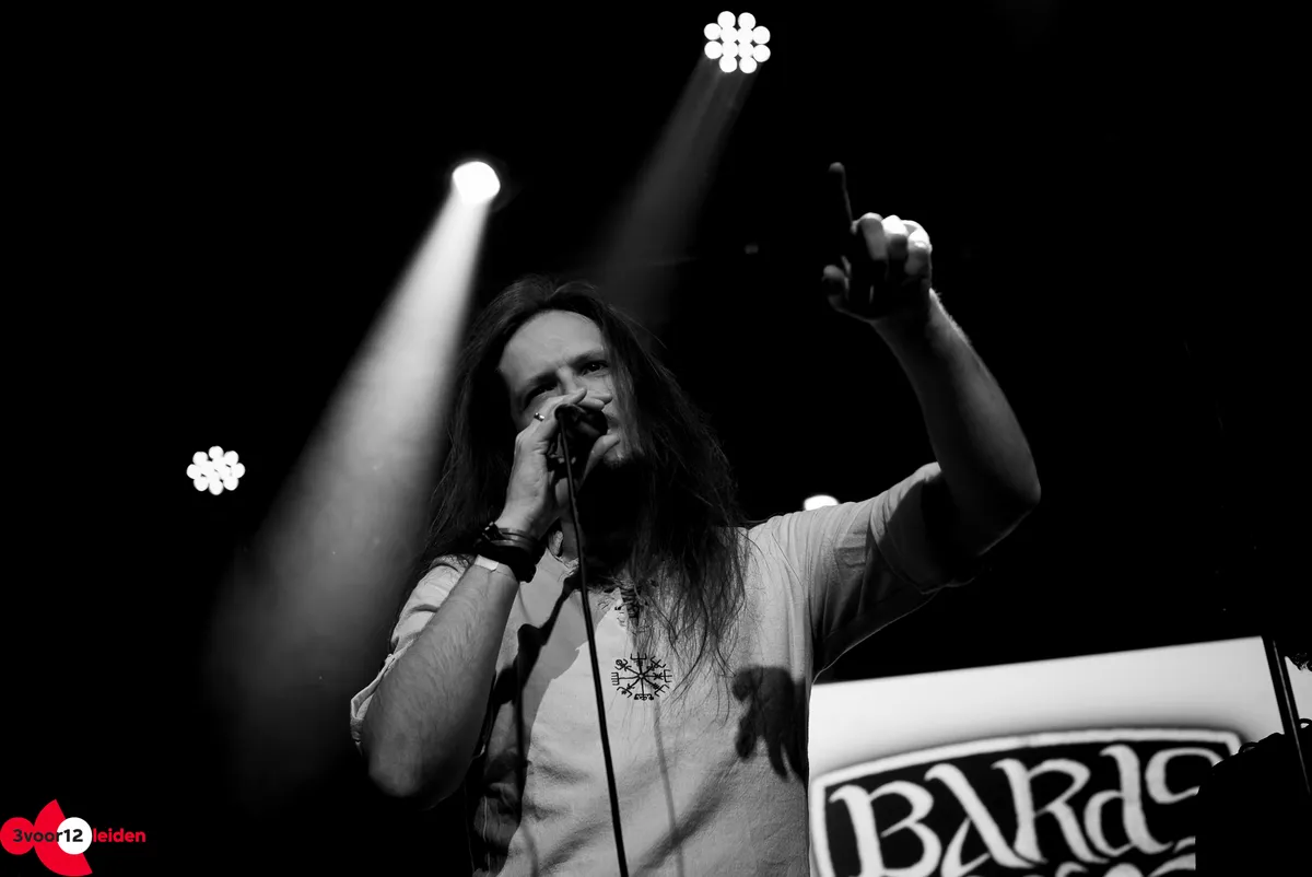 Bards of Valor trappen de denkbeeldige taverne naar de tering met hun mythologische metal. Tijd- en verhaallijnen lopen door elkaar heen als vikingen en barbaren gevechtsvliegtuigen in handen krijgen en duistere torens te lijf gaan. De set wordt geopend met ‘Drinking Song’ net nu iedereen vers bier van de bar heeft, maar al snel begint het serieuze werk. De drums domineren tijdens ‘Siege Incoming’, een nummer dat voor elk Leidenaar relateerbaar moet zijn, maar het tij keert met de glorieuze gitaren van ‘Fields Of Slaughter’. Even een dipje met het verloren aanvoelende ‘Marooned In Time’, waarna tijdens ‘By My Command’ het headbangen de precisie van een militaire oefening krijgt.