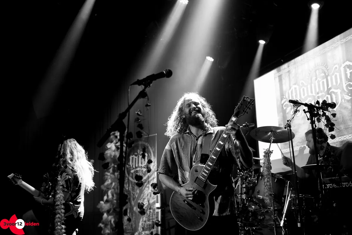 Aan de hand van de outfits zou je verwachten dat Mourning Wood Hawaïaanse loungemuziek zou maken, maar de leidraad is in plaats daarvan party folk. De ballonnen hebben ze in ieder geval meegebracht, wat een mes is dat aan twee kanten snijt voor de muzikanten. De bezoekers gaan spontaan een potje hooghouden, maar dat extra engagement betekent ook dat de bandleden af en toe moeten terugmeppen. Gitaristen springen op kisten en de zang kan tijdens het openingsnummer het best beschreven worden als dansbaar gebrul. De heren zijn schaterende satyrs, die je makkelijk weten te verleiden tot voetjes van de vloer. We worden wildebrassen tijdens 'Modern Day Viking', maar gelukkig is het enige wat geplunderd wordt deze avond de bar.