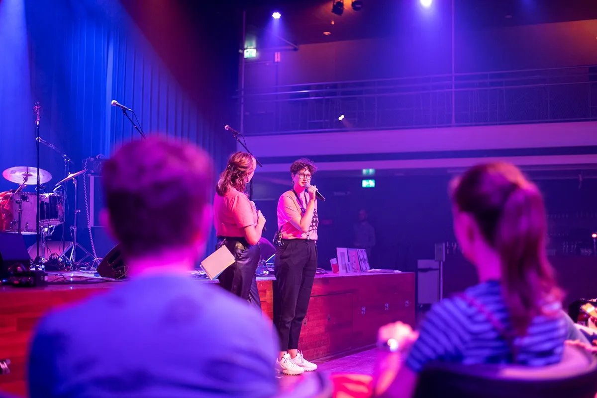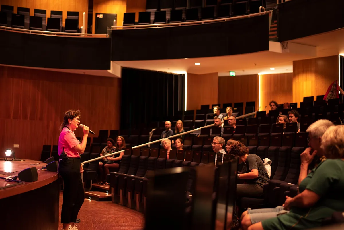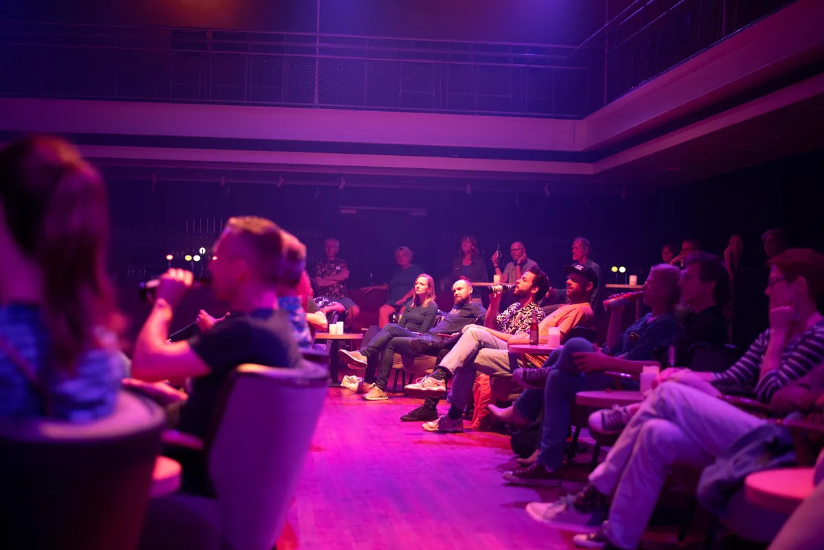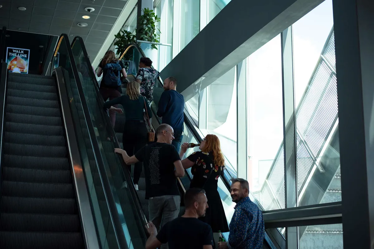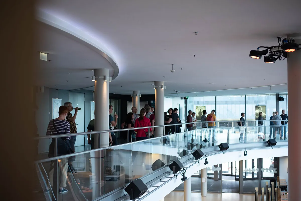 Ondanks dat we het natuurlijk anders zouden willen, met volle zalen en meedansen op de muziek, is het al heel fijn dat dit mag. We worden rondgeleid door twee dames met roze shirts, die normaal achter de schermen van TivoliVredenburg werken (één als bedrijfsleider). Bij elke zaal horen we een korte geschiedenis, leuke anekdotes over de zaal en wordt de band geïntroduceerd.