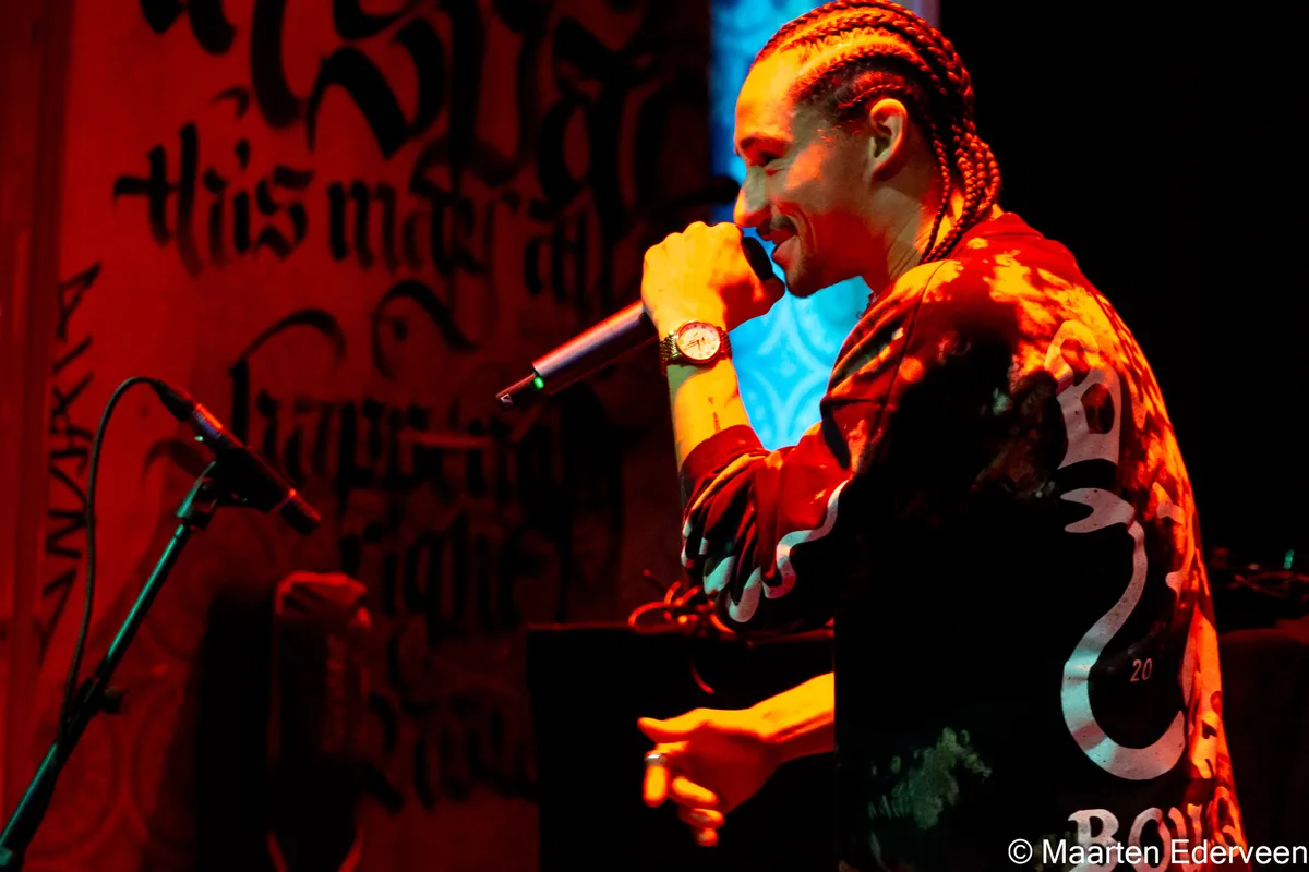 Benito is de eerste artiest van de avond en gaat er van begin tot einde volledig voor. ‘Omdat et kan’, zijn meest beluisterde nummer, staat eindelijk in de setlist en doet het goed bij het publiek. Achteraf is hij zelf zeer tevreden over zijn show, die kennelijk 48 uur geleden nog niet eens compleet was: DJ Moksie Meppie moest op het laatste moment nog bijspringen. Zoals Benito ons eerder vertelde, voelen veel van zijn nummers voor hem als een afgesloten hoofdstuk. Vanavond is daar voor het publiek helemaal niets van te merken.