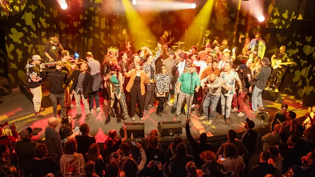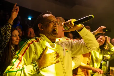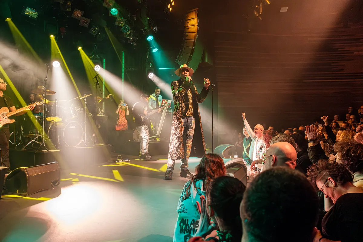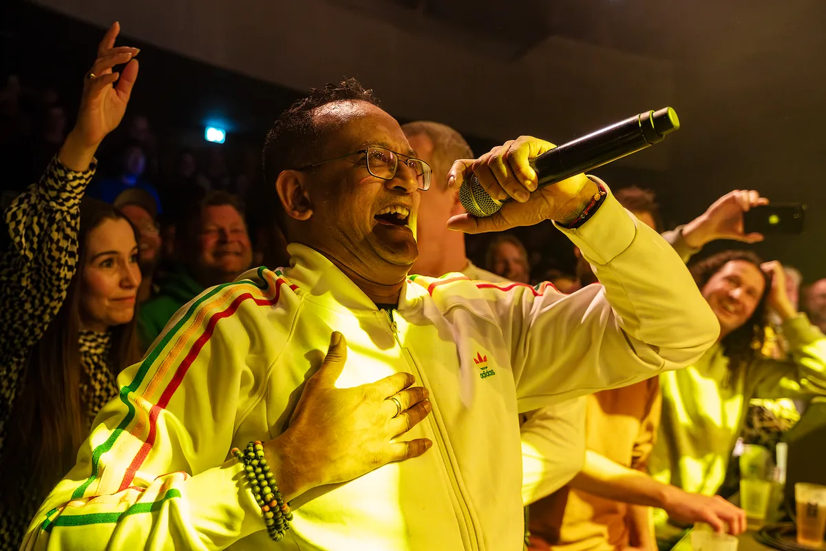 Dinsdagavond 12 maart stond Eek-A-Mouse, de artiestennaam van Ripton Hylton, in Mezz. Eek a Mouse verzorgde in Mezz een heerlijke reggaeavond. De boomlange zanger had al meteen een innig contact met het publiek. Om het contact nog maar te vergroten liep hij relaxed tijdens het optreden door de zaal. Al zingend werden selfies genomen om uiteindelijk met een grote groep rubeboys en girls op het podium te eindigen. Fotograaf Robbert Nijs was erbij en maakte voor ons dit fotoverslag.