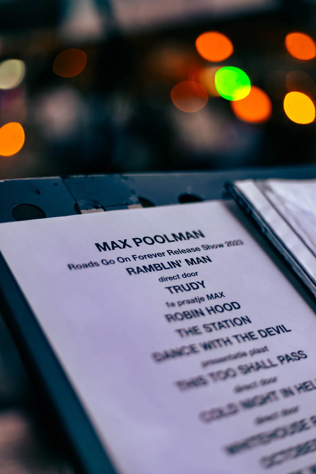 Dat moet fotografe van dienst Amélie Bauwens wel hebben ervaren bij de releaseshow, maar dat kan ook niet anders, want Max speelt tijdens zijn releaseshow niet alleen songs van zijn nieuwe album Roads Go On Forever. ,,Dichterbij americana kun je niet komen””, zegt Max over de releaseshow. Hij begint aan dit album in 2022. ,,We hebben niet een thema album gemaakt, maar we hebben gewoon gekeken van we willen een stap zetten”, vertelt Max. Het gaat bij hem om het geluid wat weer verschilt met het vorige materiaal wat hij heeft uitgebracht. Daarbij komt dat Max al bezig is met een schrijfproces waar het bij hemzelf eigenlijk een proces wat doorgaat. Ook gaat het bij Max om wat hij wil zijn als muzikant en misschien ook wel wie hij is.
