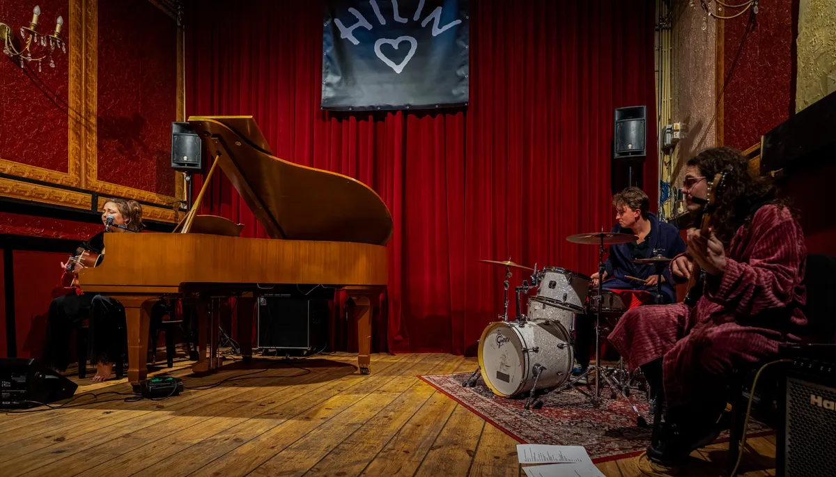 Terwijl het buiten waait en regent is het in de kleine sfeervolle 109 jaar oude Roode Bioscoop heerlijk warm. De warmte komt door de zang en stem van Hilin, te vergelijken met die van grote artiesten als Tori Amos en Lana del Rey. Ze neemt ons met mooie sfeervolle nummers mee in haar nieuwe album “Bedroom sessions". Als een ware verhalenverteller vertelt ze een intiem verhaal over de liefde. De verhalen en muziek vloeien grenzeloos in elkaar over door haar melancholische pianospel samen met de subtiele bas en drum. De stijl van Hilin is moeilijk in een hokje te plaatsen, omdat door het hele album heen de sferen van soul, jazz, blues en theatraal soepel in elkaar overlopen, maar met een geheel eigen twist. Hilin is een singer-songwriter die met gevoel, passie en een prachtige stem je in vervoering brengt en je mee laat zweven in haar verhaal.