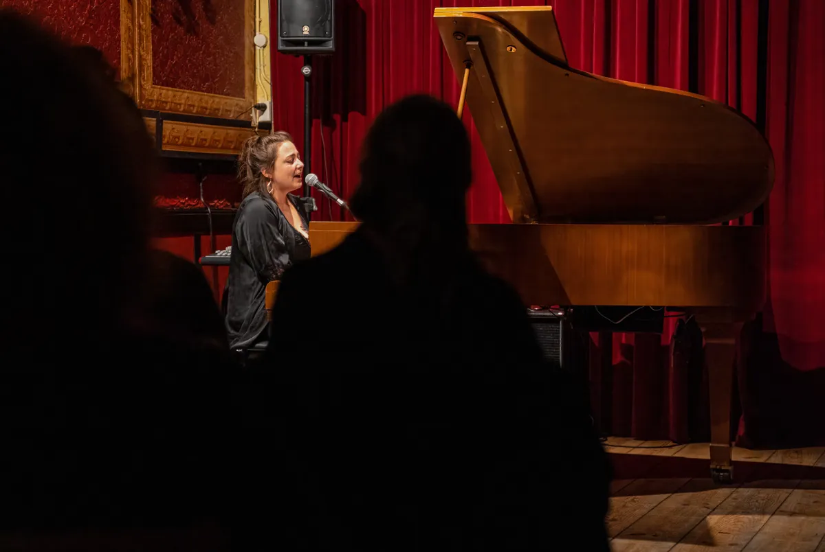 Verplaatst door corona, vervolgens ook nog verplaatst door storm. Hilin zet door en speelde afgelopen zaterdag in theater de Roode Bioscoop te Amsterdam. Een sfeervolle plek, passend bij haar sfeervolle soul ballads. Een sfeer die wordt gevangen door onze fotograaf.