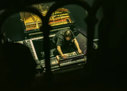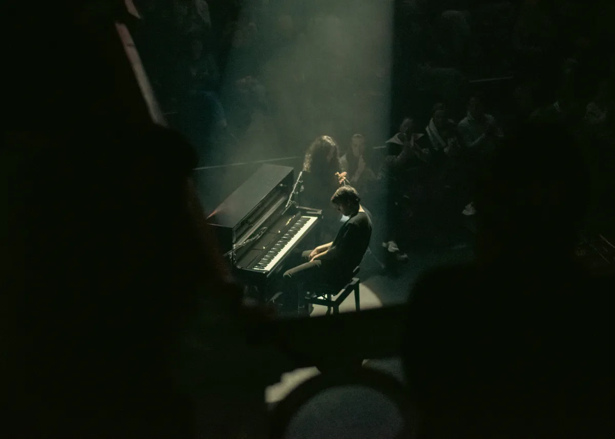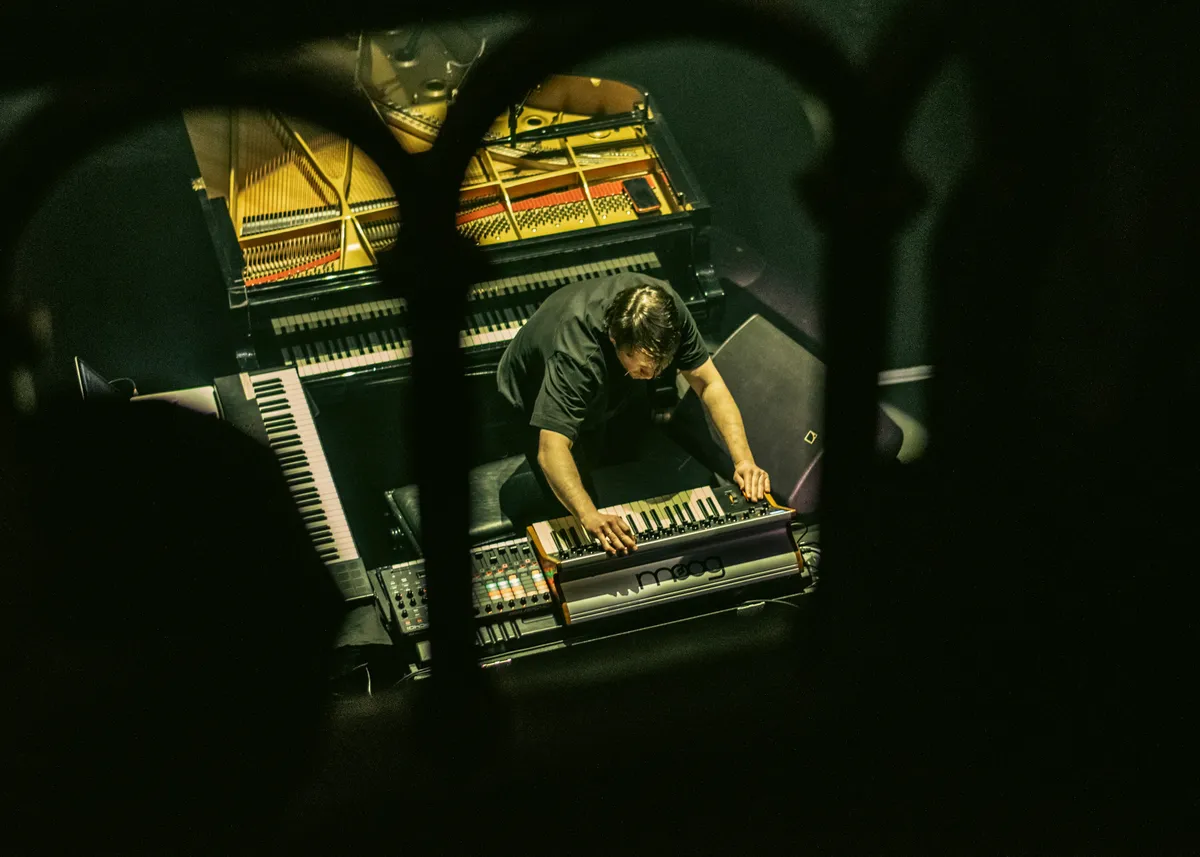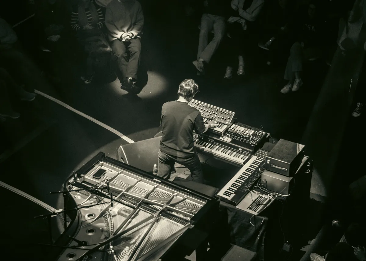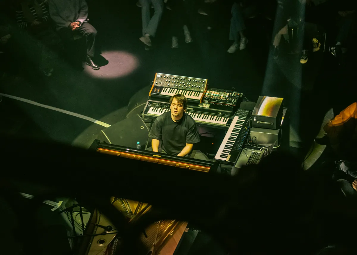 Matteo Myderwyk heeft Paradiso min of meer in een concertzaal weten om te toveren. Het is vooral aandachtig luisteren. De muziek heeft te maken met zijn achtergrond als klassiek pianist aan het conservatorium. Op deze avond is het niet alleen de piano waar Matteo zijn optreden doet.