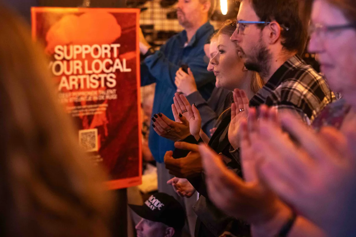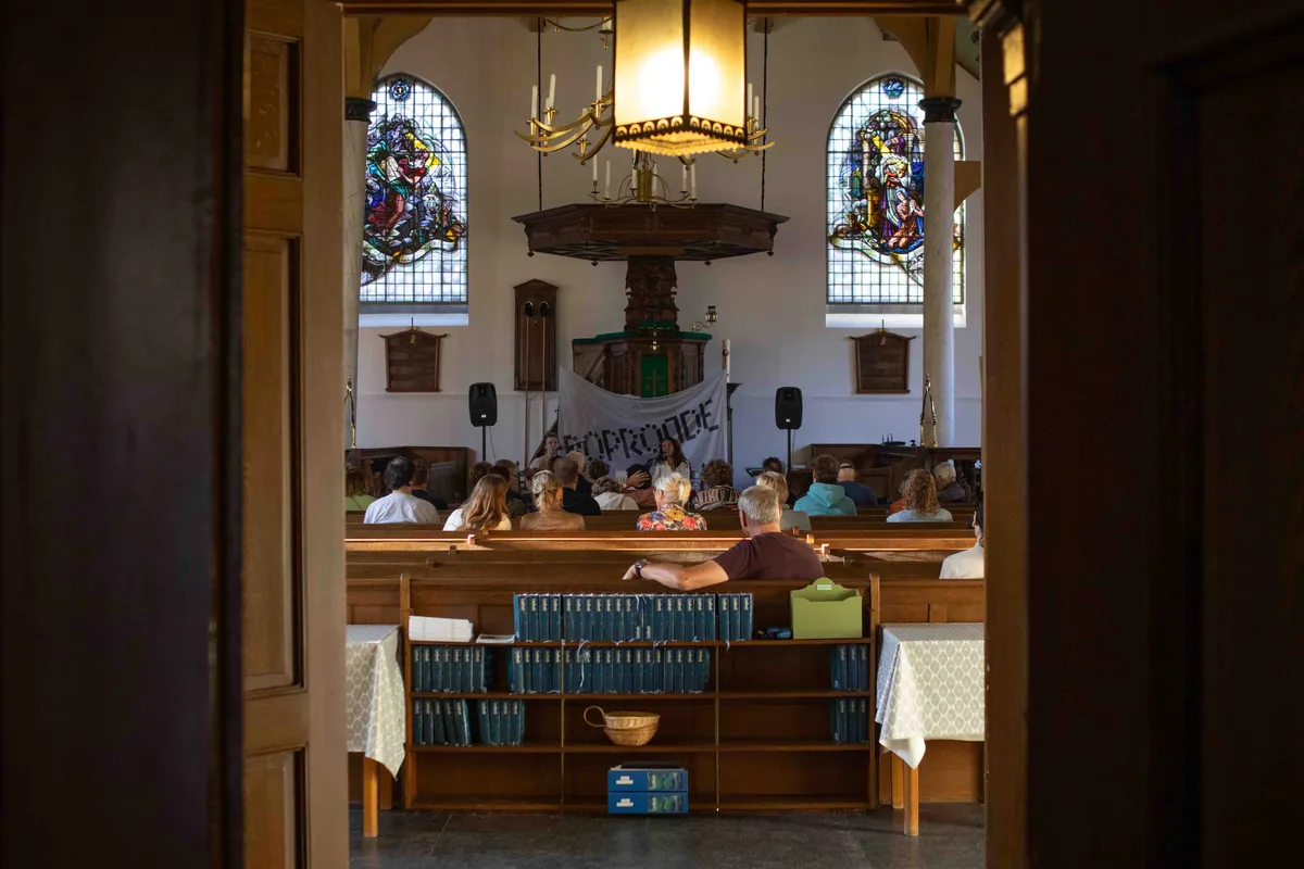 De kleine Lutherse Kerk is de perfecte locatie voor het optreden van singer-songwriter Leah Rye, die onder andere liedjes van haar binnenkort te verschijnen debuutalbum speelt. Door de akoestiek van de kerk komen de stemmen van Leah en Esther mooi tot hun recht. Die show is ook weer volstrekt anders dan de pop/rock van Inge Lamboo in Bistro Lokaal, waar we vervolgens naartoe gaan.