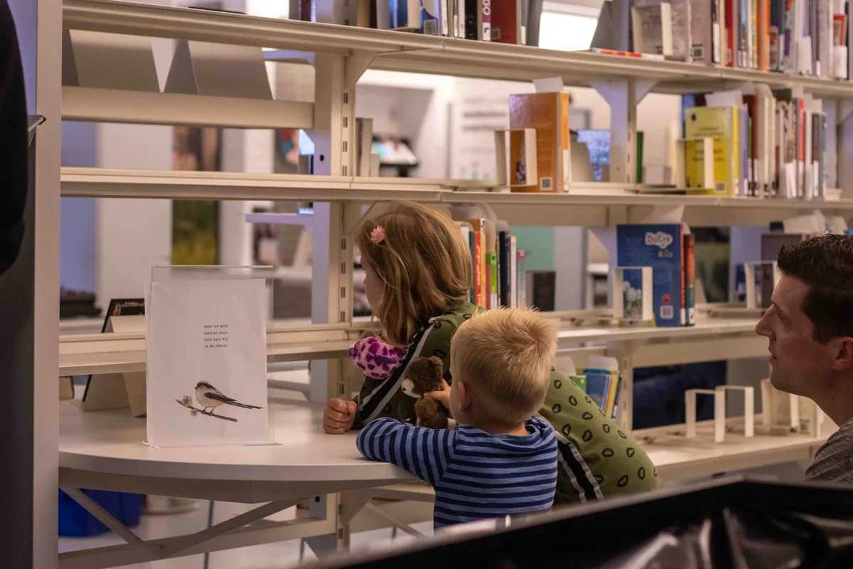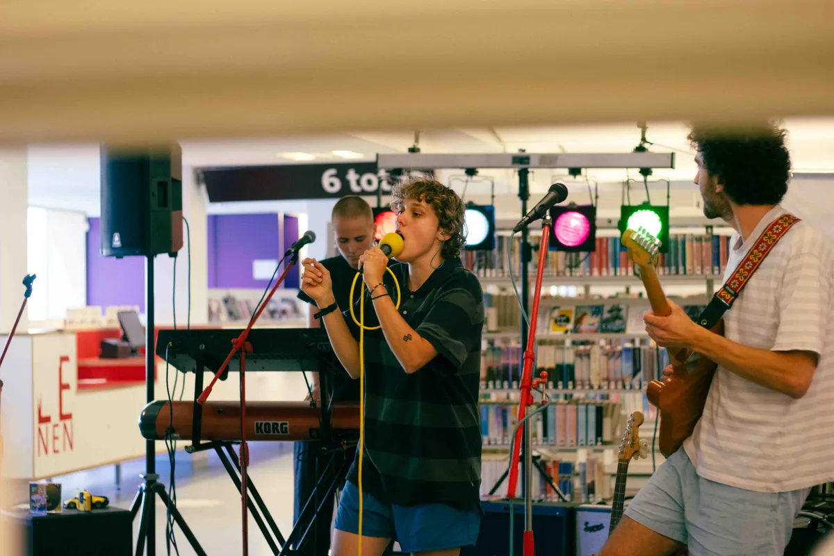 De zondagse Poprondes beginnen altijd na het middaguur, wat vandaag als extra voordeel heeft dat we nog van een een zeer aangenaam najaarszonnetje kunnen genieten. Dat betekent ook dat Lola Cedès gewoon buiten op het Kazerneplein kan spelen. Met de warme zon in de rug van het publiek is dat een prima start. Daarna brengt de route ons naar Bibliotheek Het Groene Hart, waar we met koffie, thee, limonade en koekjes warm worden ontvangen. In de bieb speelt het uit Amersfoort/Utrecht afkomstige There You Go hun indiepopliedjes, waaronder de recent verschenen single ‘Confirmation’.