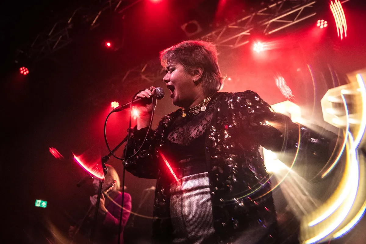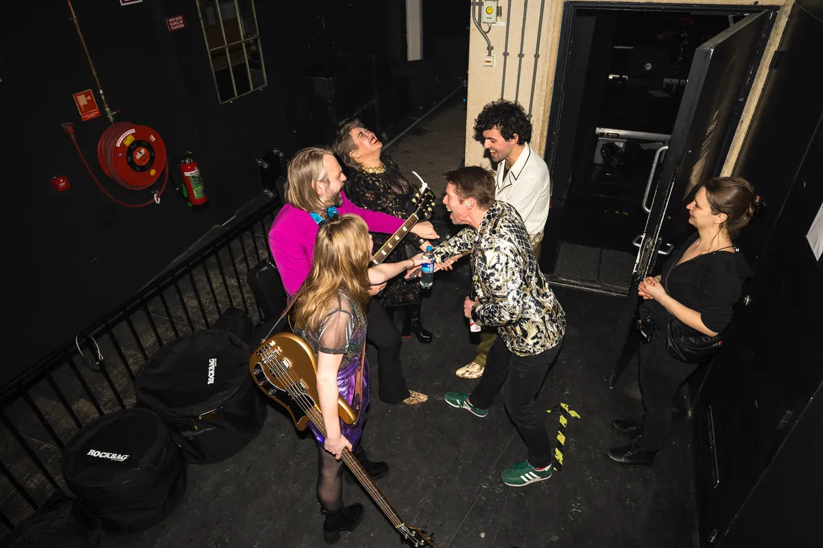 Zaterdag prestenteerde de Utrechtse bluesrockband Five Dollar Shake zijn debuutalbum Bigger Heart in De Helling. Daarop staat ook de eerder verschenen single ‘Cuz I Love You’, waarmee ze aandacht vroegen voor culturele broedplekken in Utrecht. De normaliter vijfkoppige rockband, met een vleugje glitter, was speciaal voor deze gelegenheid eenmalig '13 Dollar Shake'. Met achtergrondzangers/-essen, blazers en een extra toetseniste werd flink uitgepakt. Onze fotograaf Sabrine Baakman liep backstage met de band mee en legde de avond vast.
