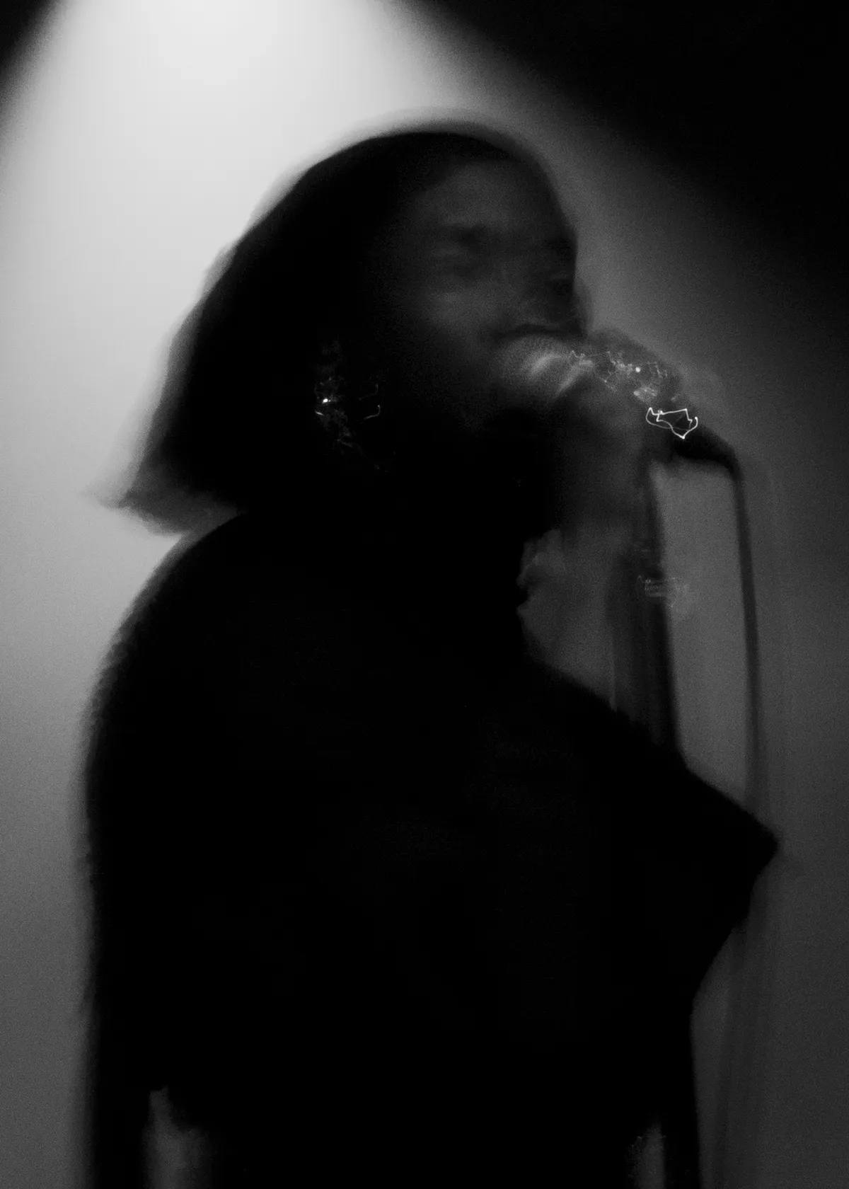 Nu is TAPE TOY niet de enige die optreedt tijdens de avond van hun nieuwe EP. Ook Maha doet dat en die haalt haar inspiratie uit de rauwe en levendige geest van de punk uit de jaren 70 en gaat in haar teksten zonder angst de confrontatie aan met systemische problemen. Ze zet zich in voor het versterken van gemarginaliseerde stemmen en deelt persoonlijke verhalen die resoneren met thema's van sociale verandering en urgentie. Na haar overgang van spoken word-optredens werkt ze nu samen met Bastiaan Bosma (Ploegendienst, Aux Raus, MICH), waarbij ze punk, EBM en New Wave-muziek vermengt met haar expressieve teksten.