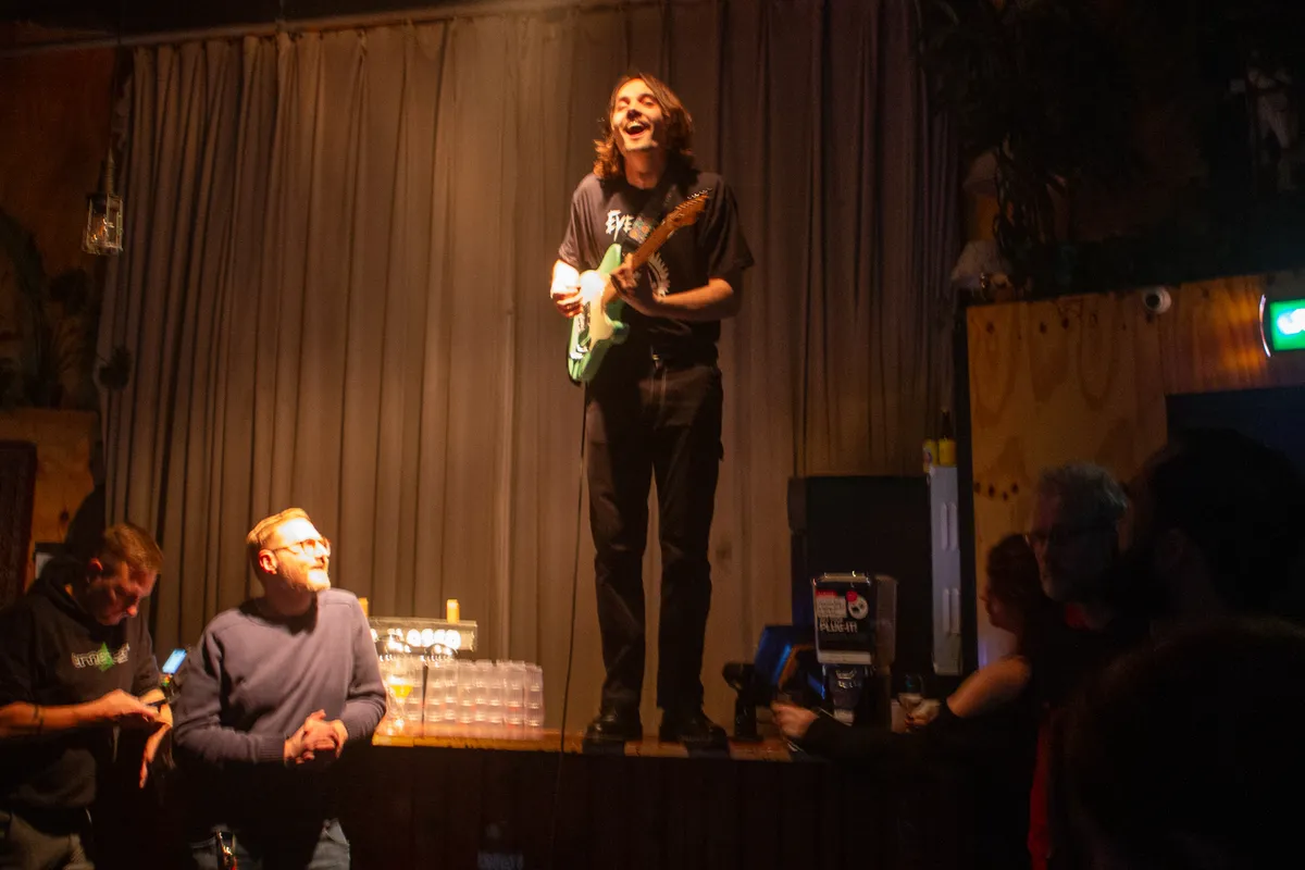 En dan is er nog The Captain die zowat op elk podium kunnen wonen. Dat hebben ze al gedaan tijdens hun avond van de tweede voorronde van de Rob Acda Award en in Cinetol is dat geen uitzondering. Een dynamische post-punk rockband die rauwe energie mengt met melodieuze intensiteit. Hun muziek haalt inspiratie uit zowel classic rock als post-punk en combineert pittige ritmes, stuwende baslijnen en scherpe gitaarriffs, allemaal overgoten met expressieve zang. Met die stijl weet The Captain andermaal de aandacht van het publiek te houden tot de laatste noot.