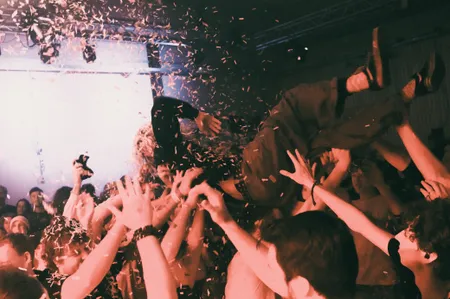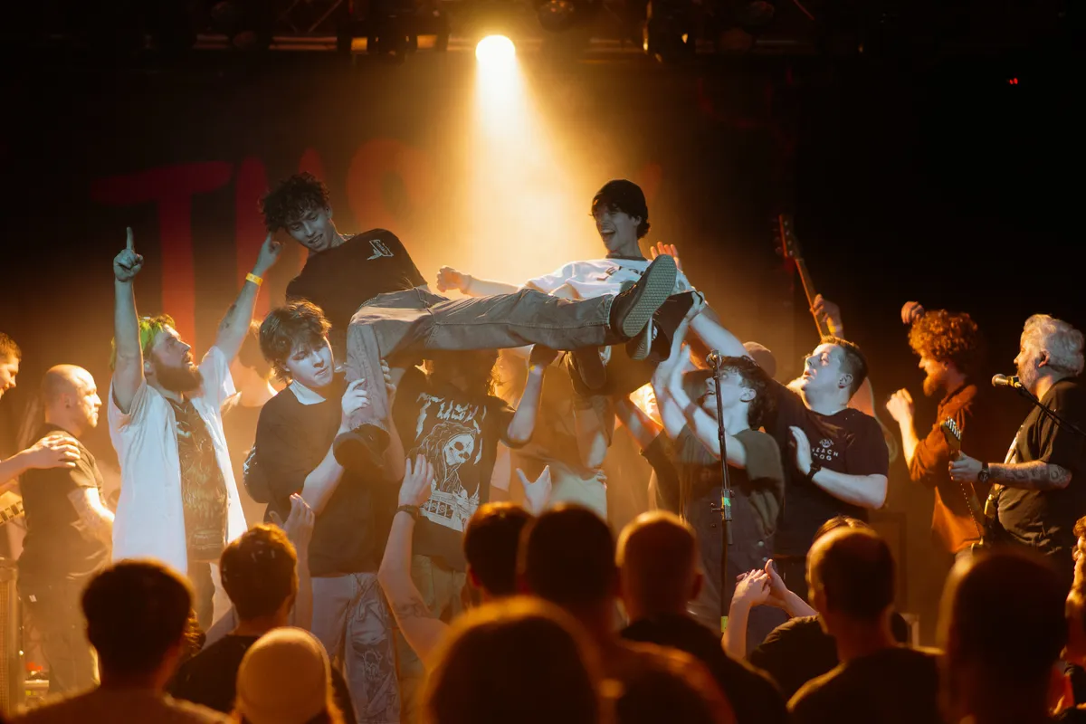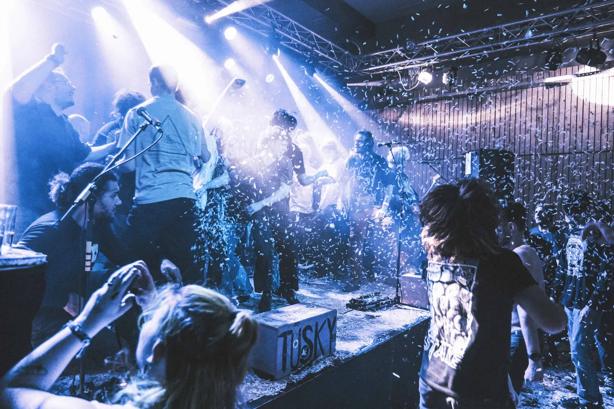 De feestelijke avond wordt ingeluid door flut. ’en de nieuwe hardcorepunksensatie State Power. State Power debuteerde in april met de single ‘Gates of Hell’ en speelde zijn eerste show op de laatste avond in de oude dB’s. Daarna volgden nog vele shows door het hele land. Bij Tusky is het vervolgens lekker moshen tussen de confetti. Tijdens de show zien we ook nog een gastoptreden van Magic Tom & Yuri. Ter verhoging van de feestvreugde is er nog een karaoke afterparty. Onze fotografen Maarten de Leeuw en Indy Pierik legden alles vast.