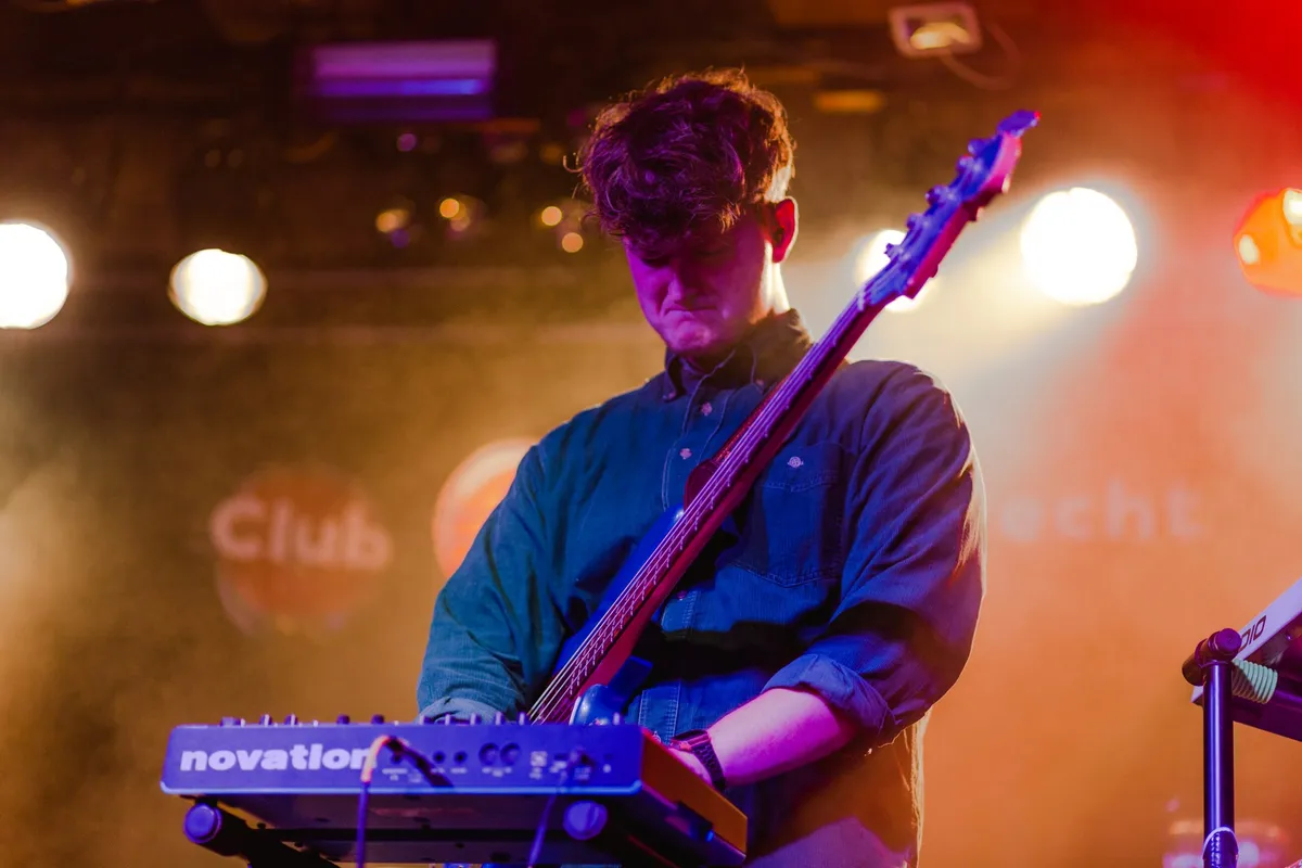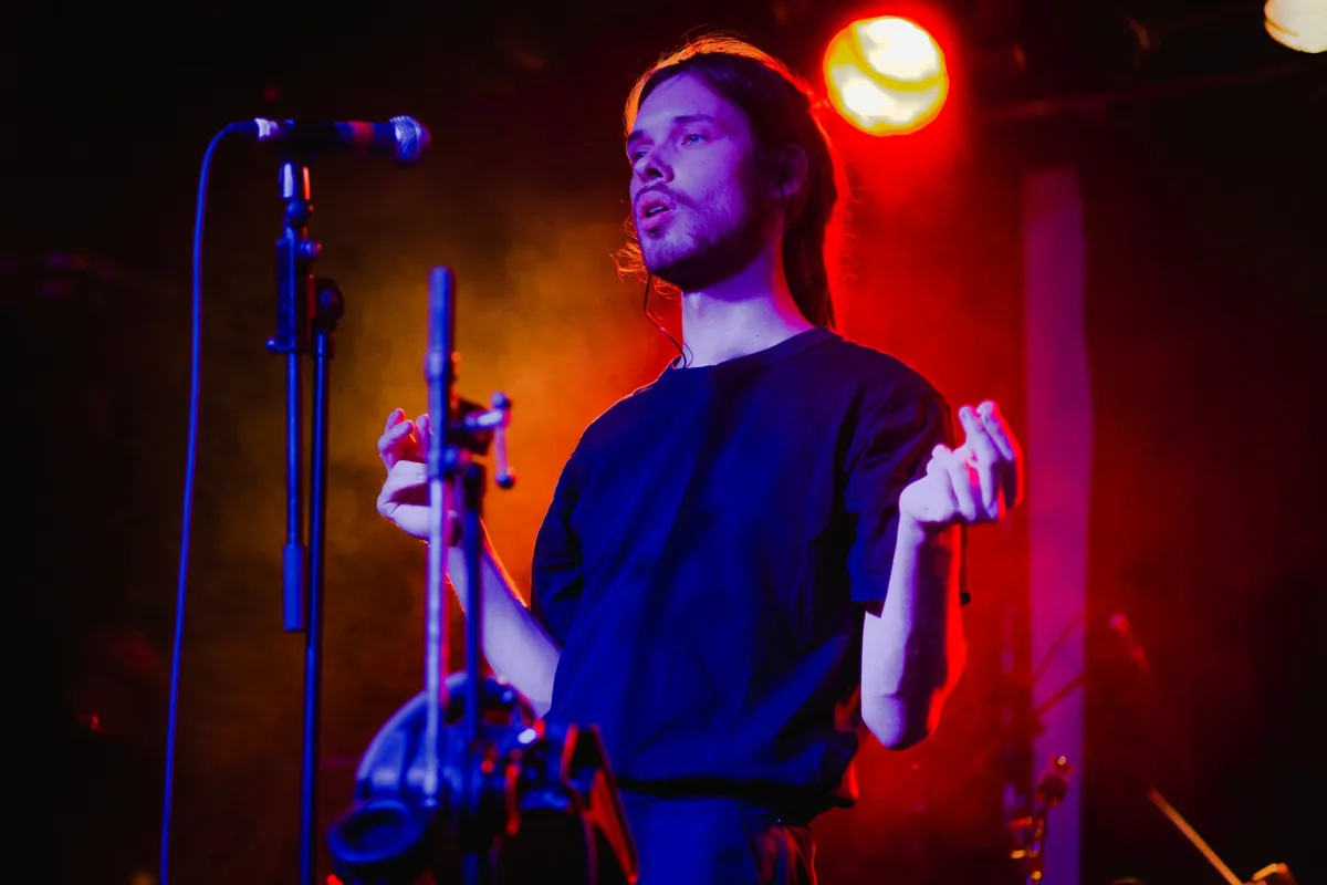 Het begin van de set van Waakhond is heftig. ‘Kleine Viezerik’, de openingstrack van zijn debuut-EP, knalt de zaal in. Naast de muziek is het ook de intense performance van Casper Buijtendijk, de persoon achter Waakhond. In de nummers daarna wordt het iets rustiger. We horen dan r&b, industrial, funk, wat meer verstilde elektronische klanktapijten (‘Geen Gedoe’), een stukje hiphop en dat vaak ook dansbaar. Waakhond zelf kent ook zulke uitersten: soms ingetogen en bijna verlegen en op andere momenten uitbundig dansend. De nummers zijn van Buijtendijk maar voor de live-show heeft hij een sterke band verzameld, die bestaat uit de leden van .multibeat plus Clemens van Laar (Sultan.) op lekker freakerige gitaar. Het is niet te zien dat dit pas hun tweede of derde show ooit is. Het optreden maakt ook nieuwsgierig naar de lichtshow en visuals die Waakhond tijdens zijn releaseshow begin juli bij zich had.