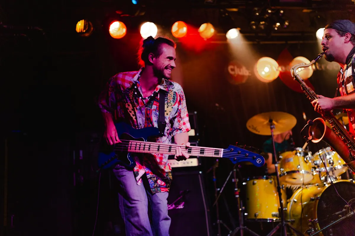 Het Bewind is een stuk luchtiger. Het vijftal speelt instrumentale garagefunk met af en toe een Noord-Afrikaans randje. De plaats van de zanger wordt ingenomen door saxofonisten Jelle en Ferry, die een prominente rol hebben in het bandgeluid. Soms spelen ze dezelfde partijen en op andere momenten lekker tegen elkaar in. Het luchtige wordt ondersteund door de kleding: vrolijke hemden (bassist Wessel had speciaal een nieuwe blouse gekocht) en het ‘stripverhaal’-pak van saxofonist Jelle de Korte. Het Bewind werkt vanavond ook met publieksparticipatie: een aantal percussie-instrumenten – waaronder verschillende van de dochter van drummer Peer Timmers – zijn door de zaal verspreid en de bezoekers mogen lekker meespelen. Met daarbij het vriendelijke verzoek om ze na afloop wel weer in te leveren, om een verdrietig meisje te voorkomen. Dansen zit er, ondanks een prikkelend oproepje van gitarist Ties Timmers, in deze setting niet in. Dat moet wachten tot een andere keer.