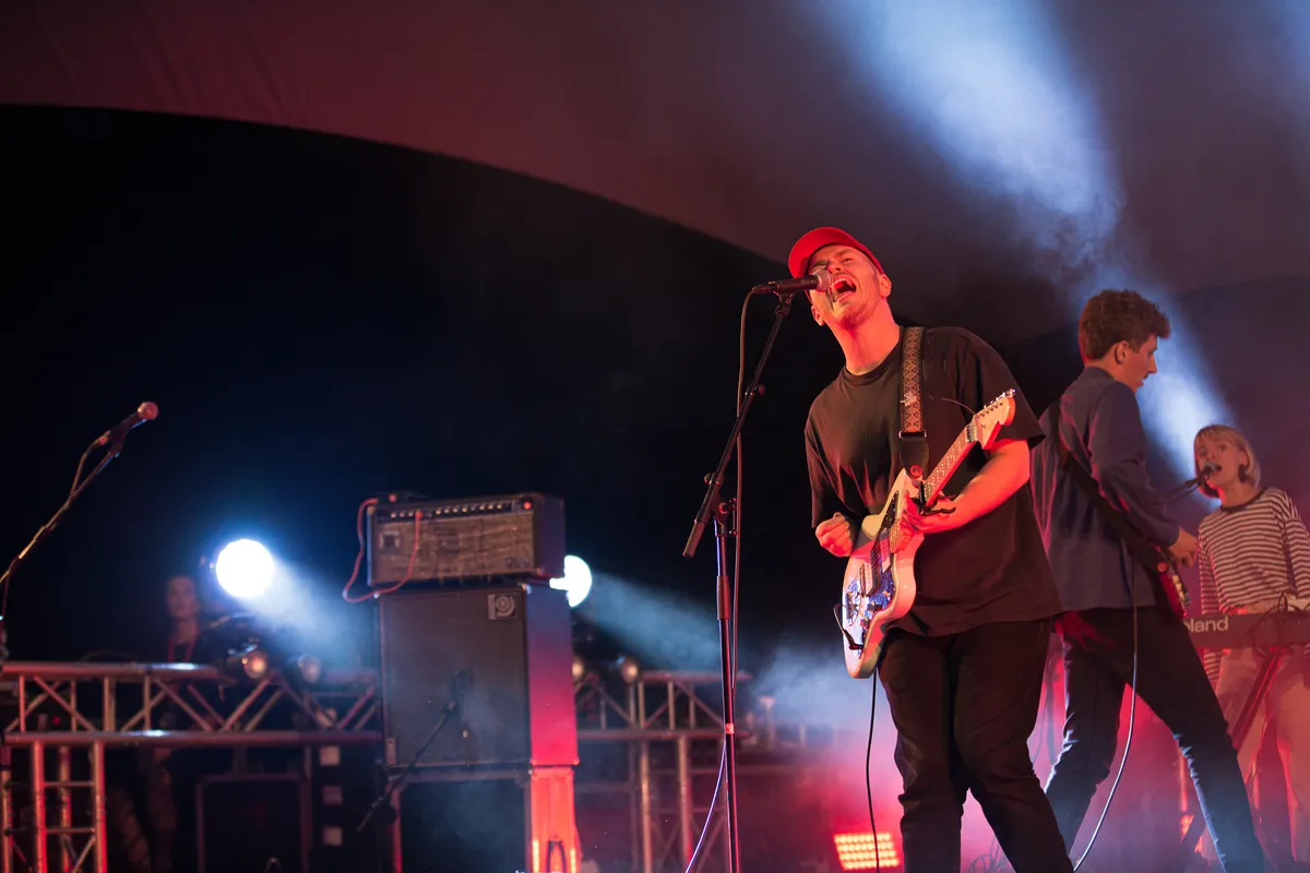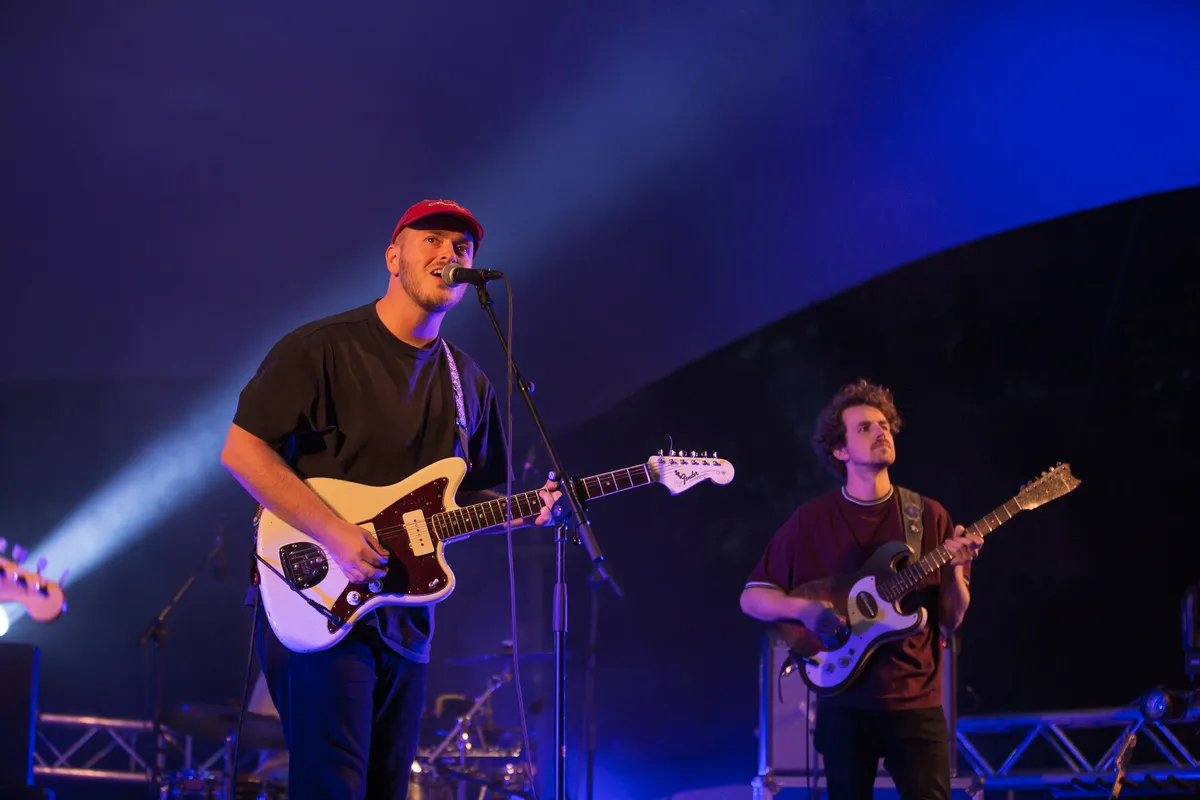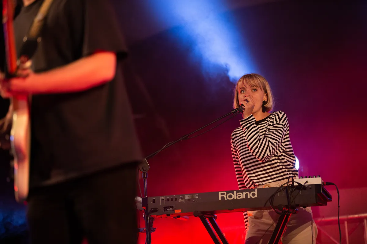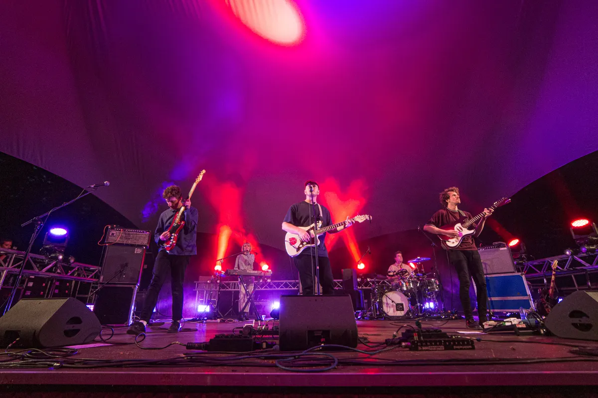 Tijdens de dagen dat muziekliefhebbend Nijmegen waarschijnlijk het liefste in Biddinghuizen was geweest voor een weekendje Lowlands, biedt Doornroosje op zaterdag 22 augustus een klein muzikaal lichtpuntje in coronatijden. Met de zomerse muziek van Waltzburg in het Openluchttheater De Goffert worden de herinneringen aan festivalavonden weer even opgeroepen, ondanks dat het kwik voor de het eerst in weken al vroeg op de avond onder de twintig graden zakt. Wellicht is het ook die combinatie van de kou en Waltzburgs vrolijke nummers die heimwee oproepen naar de festivalsfeer, lekker dicht tegen elkaar aan dansen en gezamenlijk uit volle borst meezingen. Vanavond moet het publiek netjes blijven zitten en mag er enkel geneuried worden, terwijl men troost vindt in de warme klanken van het Nijmeegse vijftal. Het gemis van een traditionele festivalzomer was echter nog niet zo duidelijk voelbaar als op deze zaterdagavond.