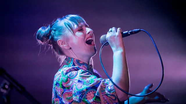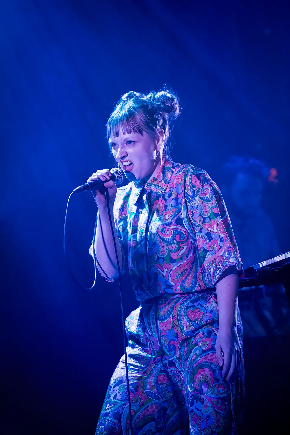 L’Asset is de laatste act. Met de winst van de Rob Acda Award 2023 onder haar riem belooft het een interessante show te worden. Gekleed in een kleurrijk pak en haar haar in spacebuns, betoont ze eer aan haar muziek, die even excentriek is. Zij en haar band maken synth-pop, waar haar krachtige stem een randje aan geeft. Ze beginnen met nummer Chaos. De naam zegt het al: alles aan L’Asset is chaotisch, maar het werkt. Eén van de spacebuns begint steeds verder van haar hoofd te zakken door al het gespring en gedans. Uiteraard lijkt dat haar niets uit te maken en is het tijd voor nummer Self Love, een vrolijk nummer over dichter bij jezelf komen en steeds een betere versie van jezelf worden. De boodschap komt over op het publiek en die dansen ook uitbundig mee. De avond wordt afgemaakt met laatste nummer Woven, eén van haar bekendste nummers. Het wordt snel duidelijk waarom, het is catchy en L’Asset en haar band gaan er helemaal in op.
