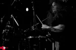 Ruben pakt door: “De demo’s die ik kreeg waren van die iele, superstrakke jaren-tachtig-drummachinepartijen.” Terwijl hij dit zegt, druipt de minachting voor drummachines van zijn gezicht. We vermoeden dat de bewuste drummachine tragisch verdronken is in de Scheveningse haven. “Mijn achtergrond is punk (de band CooCoo, red.); ik ben wat meer van het volle geluid.” Zowel live als op de plaat is dat goed merkbaar. Ruben is geen little drummer boy. Ook gaat hij niet los met volle, vette Def Leppard-drums. Droog, laag gestemd, bijna doodgedempt — dat is zijn kenmerkende geluid: “Ik heb echt niets met modderig geluid.”