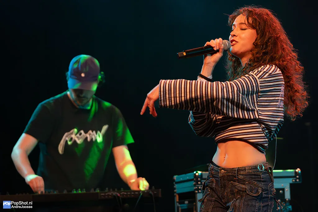 Daarna, om 21.30 uur, gooide Ruby Mus de deuren verder open met haar ritmische R&B-pop en zelfverzekerde presence. Niet gek, want samen met XXJULÍA is zij een van de drijvende krachten achter het collectief dat zich inzet voor betere representatie van vrouwen en queers op de Nederlandse podia.
