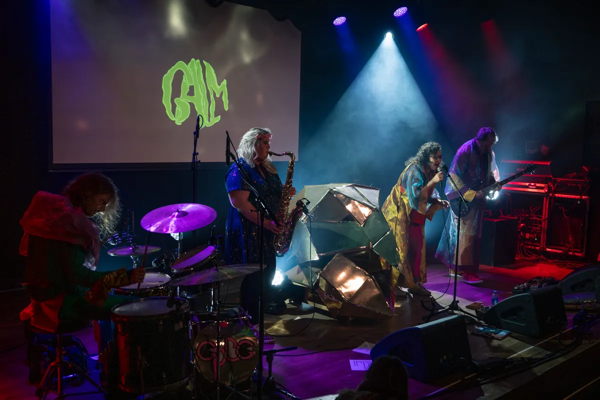 Improvisatie, theater en andere creatieve uitingen zijn de pijlers van GALM wat zich ziet als kunstcollectief. Waar zit de creativiteit van GALM? ,,Muziek, kostuums, huiltjes, films, theatrale shows: we inspireren elkaar om dingen te maken! Vanaf de eerste jam waarbij saxofonist Robert Dubois ons bij elkaar bracht in 2022, klikte er iets. Vanuit poëzie en muzikale improvisatie ontstonden rauwe nummers. Al vrij snel bleek dat deze creatieve kettingreactie verder gaat. Bas Snabilie en Robert Dubois hebben een achtergrond in de kunst”, vertelt Lonneke. Het inspireert Lonneke in 2024 om films te gaan maken bij drie GALM nummers. ,,We moesten daarvoor natuurlijk de opnamestudio in. En toen de drie poenkfilms er eenmaal waren, maakte Bas er nog één. Toen dacht ik weer: daar kan een fysieke EP bij. Met hulp van meer dan honderd supporters via crowdfunding is dat nog gelukt ook. Die impulsieve creativiteit is blijkbaar aanstekelijk. Ieder bandlid maakte ook artwork voor de EP. Zelfs Markus is aan het schilderen geslagen. En ik ontwierp er nog een poëzieboekje bij. Nu, met de release in Victorie en Robert die een andere weg is ingeslagen, lijkt de cirkel van de afgelopen drie jaar rond. Maar de maak-impulsen galmen door. Houd ons dus in de gaten!”, zegt Lonneke.