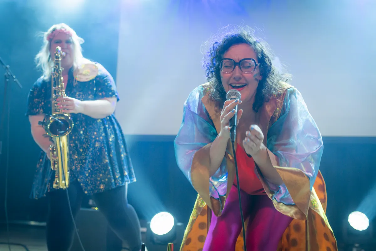 Hoe hebben jullie naar de releaseshow toegewerkt met de elementen die jullie gebruiken in de muziek zoals poëzie en het maken van bewegend beeldmateriaal? ,,We hebben allemaal iets met theater, dus het kon niet anders dan dat dat doorsijpelt in de shows. De show is vanzelf gegroeid”, zegt Lonneke. De vier videoclips zijn een project van haar die naast GALM ook de stadsdichter van Alkmaar is. Ze zijn samenwerkingen aangegaan met verschillende filmmakers. ,,Het zijn poenkfilms, bedoeld als op zichzelf staande werelden, die de nummers aanvullen in plaats van illustreren. Er is ondertussen al een vijfde bij gekomen: Oceaan voor de Vredesweek Alkmaar”, zegt Lonneke. Meestal komen videoclips alleen online uit, maar Lonneke heeft ze het afgelopen jaar live met publiek in première laten gaan. ,,Zo zijn we ze steeds meer gaan integreren in optredens. De kostuums en props uit de films nemen we ook mee het podium op. Zo gaan de verschillende werkelijkheden door elkaar lopen. Dat levert een verrassende overdaad aan associaties en beelden op. Iets wat op een verhaal zou kunnen lijken…”, zegt Lonneke.