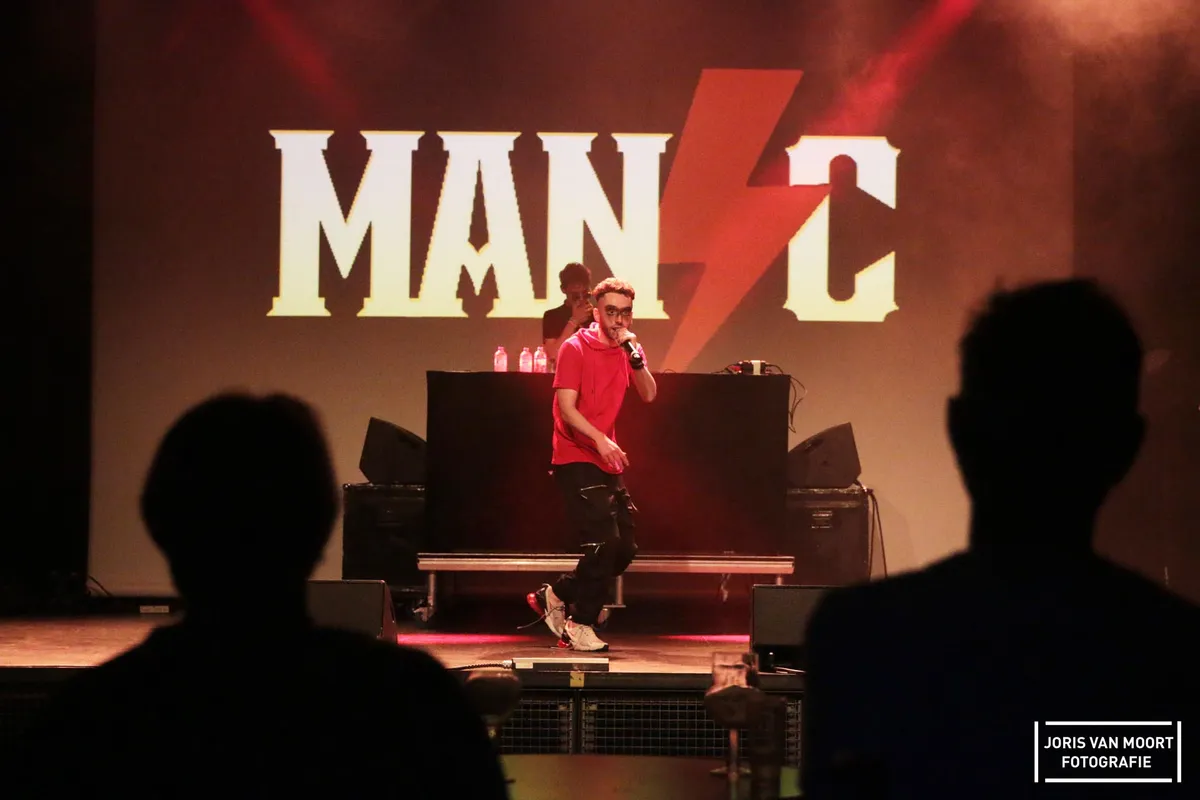 Tweede act van de avond is voor Manic. Deze negentienjarige hiphopper uit Bergen op Zoom zit er al lekker in en danst wat in de rondte, terwijl hij zijn tunes met Engelstalige teksten er doorheen ramt. Zijn meegebrachte dj staat achter de dj-booth, met niets meer dan een laptop. Een draaitafel? Nee, een laptop en een play-button is voldoende. De act zelf heeft meer ballen dan zijn voorganger en krijgt het publiek mee, al blijft het oppervlakkig.