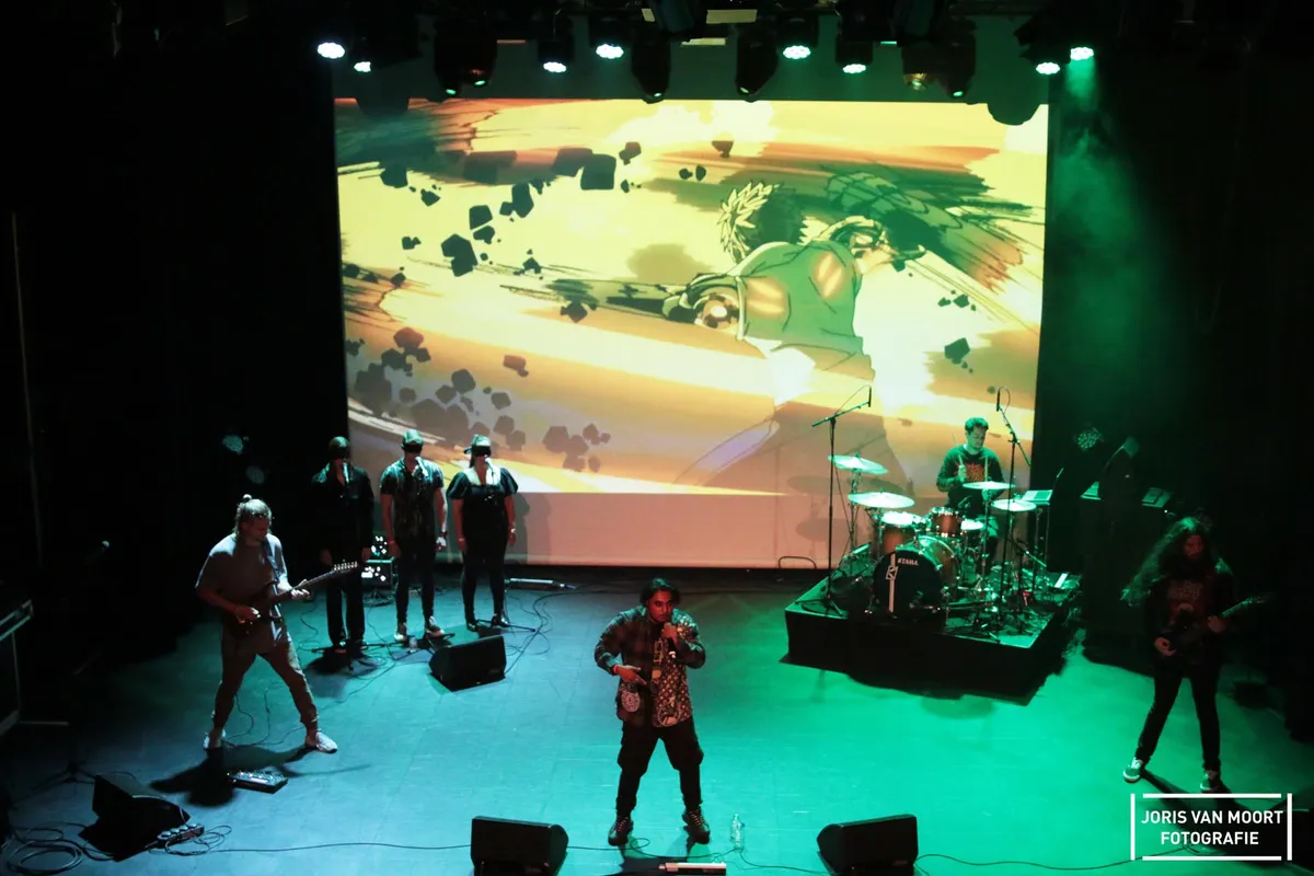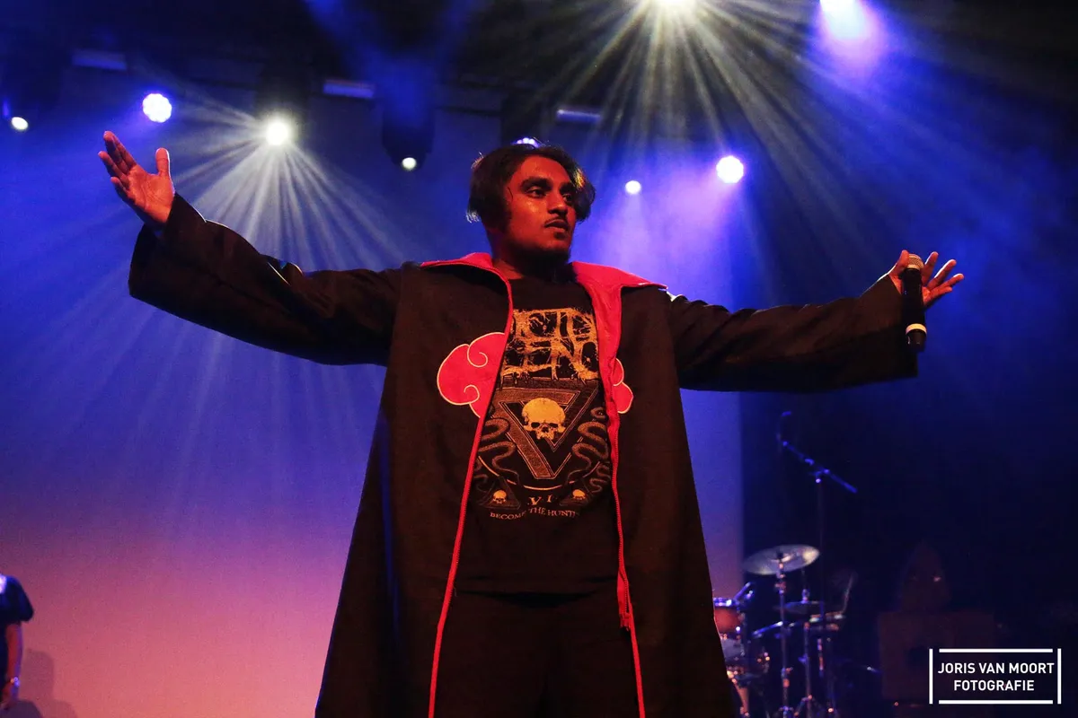 Akuma Jin is van een ander kaliber. Waar de zanger eerst solo op de bühne stond tijdens de voorronde, heeft hij nu gezelschap van zes andere bandleden, inclusief drie backing vocals die gedurende de set geblinddoekt op het podium staan. Een gedaantewisseling als het om productie gaat, maar het hele concept is wat onduidelijk. Met anime-visuals op de achtergrond, een drummer en twee metal-gitaristen krijgt het publiek een mengelmoesje van hiphop met metal van de plaatselijke Japanner. De backing vocals vallen deels weg in de bak geluid van de gitaristen. De opzet is aardig, al zijn de Japanse invloeden niet te horen in de muziek en staan de backingvocalisten er best wel lullig bij.