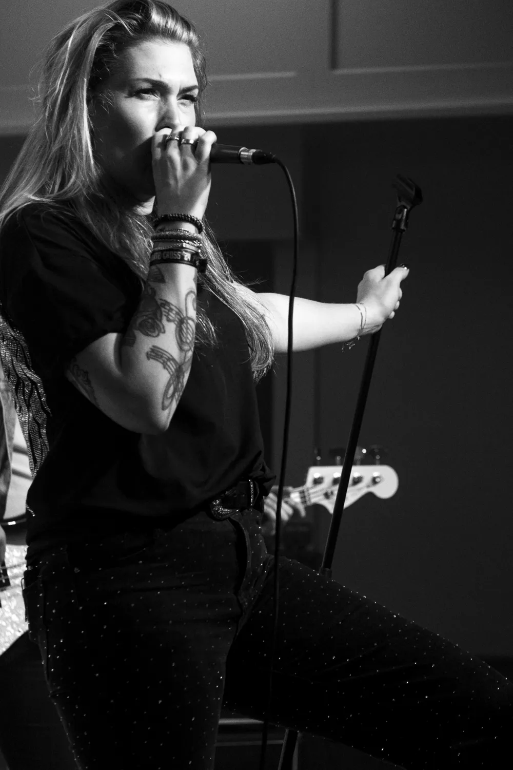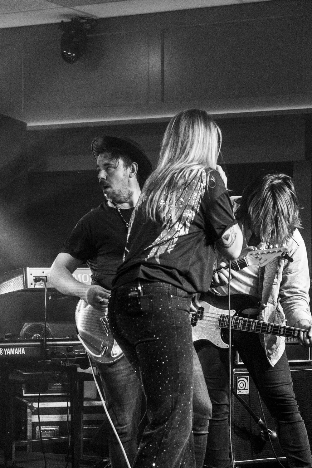 De Doetinchemse viermansformatie Ruby Electric is nog niet zo lang onderweg met eigen repertoire. Drie nummers op de streamingdiensten die sinds juni 2024 zijn uitgebracht, maar de band heeft wel ambitie: in maart 2025 komt een album uit waar men nu mee bezig is. Een rauwe mix van soul, blues en rock ‘n roll die de grenzen van de rock en blues opzoeken, aldus de eigen bio. Ondanks dat Ruby Electric nog niet zo lang bezig is staat de podiumpresentatie als een huis. Gitarist Nick Helmink speelt op zijn Fender lange solo’s vooraan en in het publiek. Bassist Patrik Vulic en Josh Kater op drums zorgen voor een ritmesectie die de snelle nummers dragen. De stem van frontvrouw Maaike Boksebeld klinkt als een doorleefde soulstem met lange uithalen die doet denken aan Anastacia. Ondanks dat de band maar drie nummers online heeft staan wordt er een dik uur gespeeld, althans: na 55 minuten is de setlist klaar en mag het publiek nog een verzoeknummer kiezen: ‘Radar Love’, een cover doordrenkt met de Ruby Electric sound. Ruby Electric heeft genoeg meters gemaakt en het is duidelijk dat er vanavond sprake is van een double bill op het affiche.