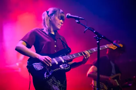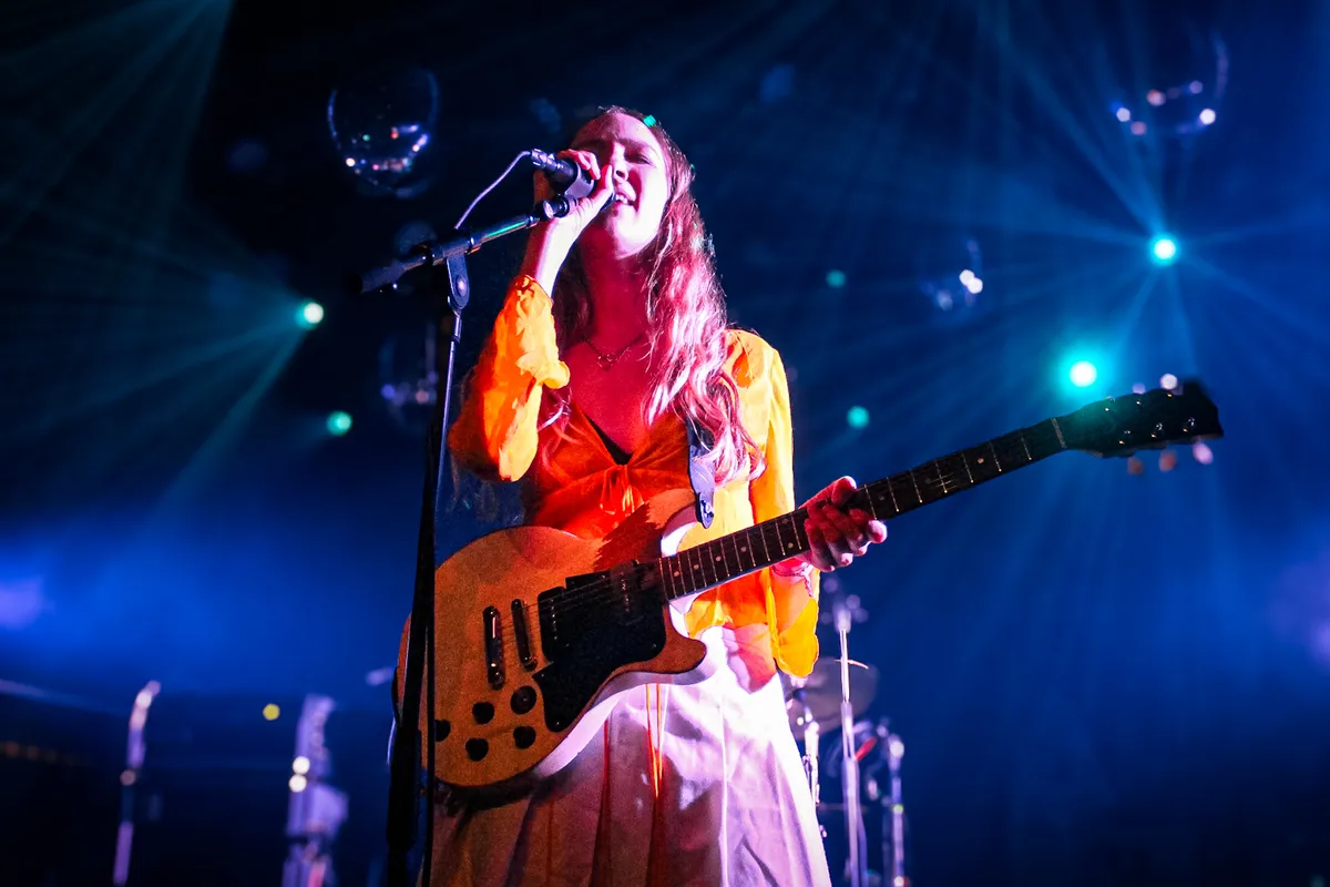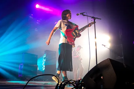 Terug naar de Main. Daar staat Britse indierockband Porridge Radio die ons vorig jaar een paar kilometer verderop, tijdens Best Kept, al eens wist te emotioneren en betoveren met hun melancholische liedjes die recht uit hart en ziel komen. Terwijl de Secret op Best Kept een maatje te klein was, zien we nu dat de half afgesloten Main van 013 nog een maatje te groot is. Het publiek is wat ongeduldig, lijkt meer te zijn gekomen voor het hardere gitaarwerk en kletst er op los. En dat is zonde, want hoewel de band het publiek ook een beetje beschouwt als bijzaak, weet frontvrouw Margolin de mensen die wel aandachtig luisteren te intimideren met haar breekbare stem. Aangevuld door stuwende gitaren en synthgeluiden die als lichtpuntjes in de donkerte fungeren. Ook de twee nieuwe liedjes in de set, die een stuk dansbaarder, speelser en minder beladen klinken, weten het publiek niet te overtuigen. Toch kan de band bij de laatste twee nummers rekenen op een schaars aantal fans die tranentrekker ‘The Rip’ en het opwindende ‘Back To The Radio’ meezingen. [RZ]