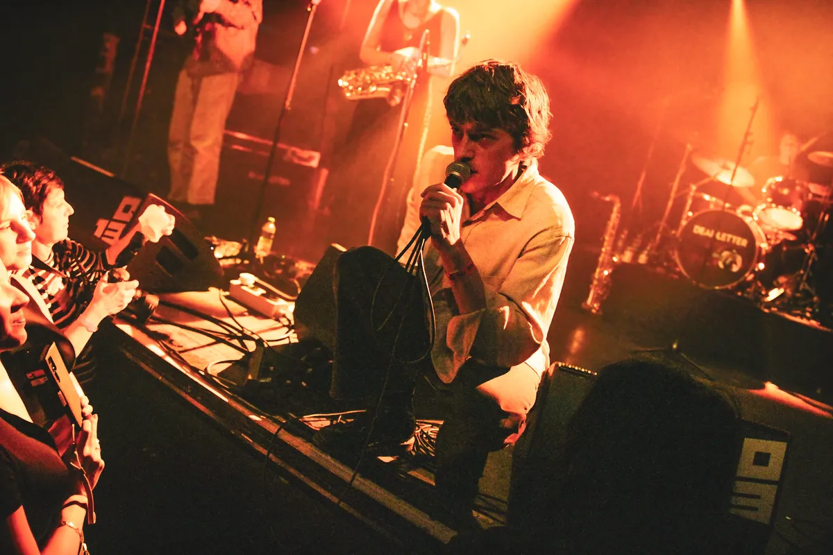 Als afsluiter van de avond vraagt Zac Lawrence, frontman van DEADLETTER, direct onze aandacht, het is duidelijk dat we deze band serieus moeten nemen. De Brit staart met zijn indringende blik je ziel in en de ritmische postpunkklanken van de band zijn hypnotiserend. De combinatie van postpunk en indierock is uplifting en enorm dansbaar. Opvallend is de saxofoniste, die voegt een onverwachts funky tintje toe aan de muziek die het onmogelijk maakt om niet te dansen en/of te beuken. Aan moshpits geen tekort, de vloer is dan ook doordrenkt met zweet en bier als de zanger in het midden op de grond tussen het publiek plaatsneemt. Ook na korte momenten van rust krabbelt DEADLETTER met gemak weer op, in tegenstellig tot de grotere namen op dit festival lijkt het ze geen moeite te kosten om het publiek drie kwartier lang in hun greep te houden. Als een soort god zweeft Zac uiteindelijk al crowdsurfend over de chaotische massa heen. Iedereen komt nat en verrot de zaal uit, en met uitzondering van een bloedlip en wat blauwe plekken hier en daar, zien we vooral een grote glimlach op de gezichten van de vermoeide bezoekers van 013. [JvdH]