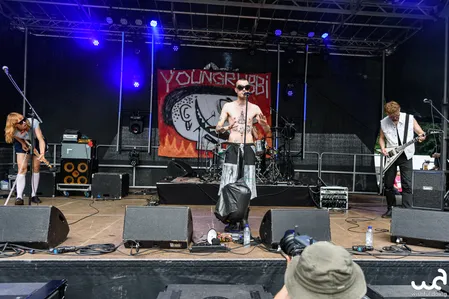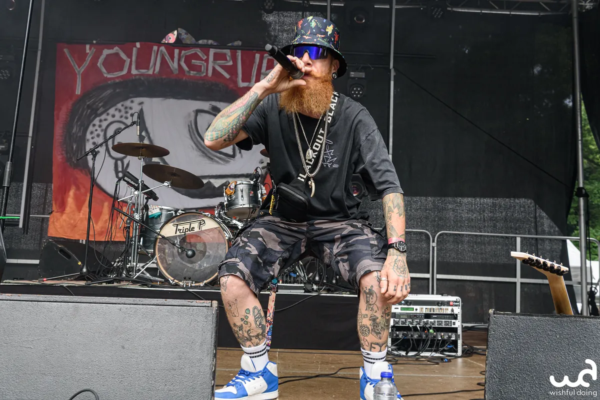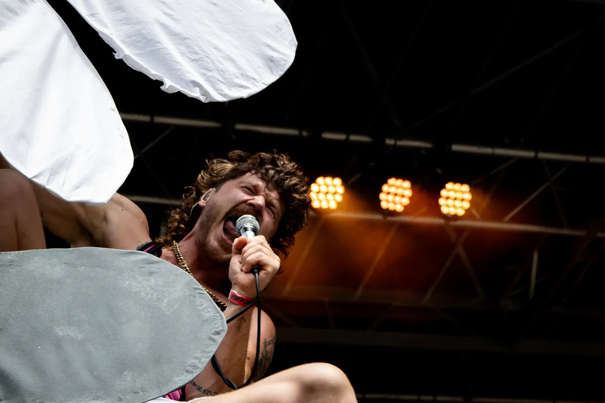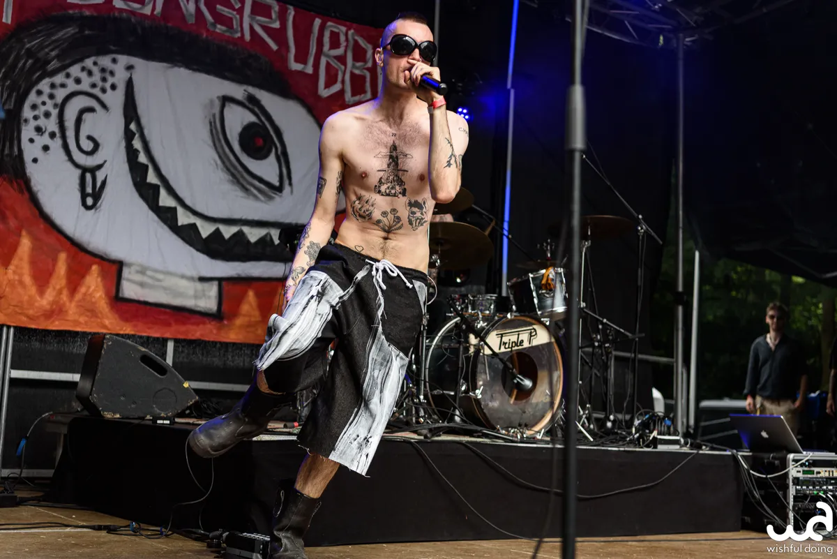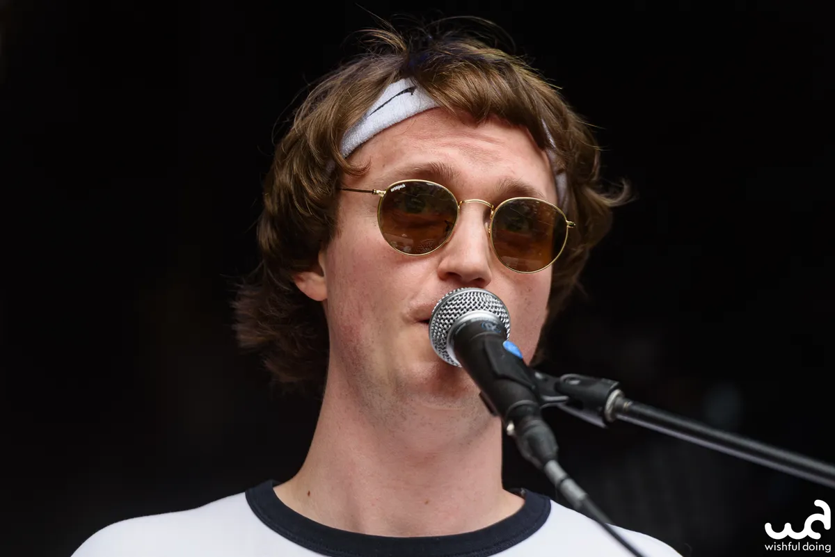 Onder leiding van Ymte’s zware oorlogstrom bouwt de band mooi spanning op in nummers, en met het ‘Change It All’ zit er ook een fijn rustmoment in de opbouw. Hoogtepunt van hun set is ‘I’ve Been Young’; de zon breekt voor het eerst door de wolken. Naast die tweede paalbeklimming is er de mondharmonicasolo op looper en beweegt de band op een rijtje vooraan het podium mee, terwijl ze de melodie meespelen. Richting het slot, na een minuut of tien, wordt het tempo opgevoerd tot razendsnel voortrollende bluesrock. Arthur zingt met een Elvisiaanse snik in zijn zang. Flowerboymateriaal is het niet, maar het werkt prima. Als The Grand East iets later geprogrammeerd was, had de band de moshes gekregen waar het recht op had.