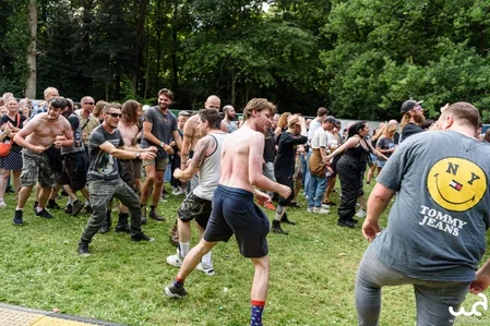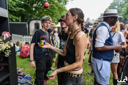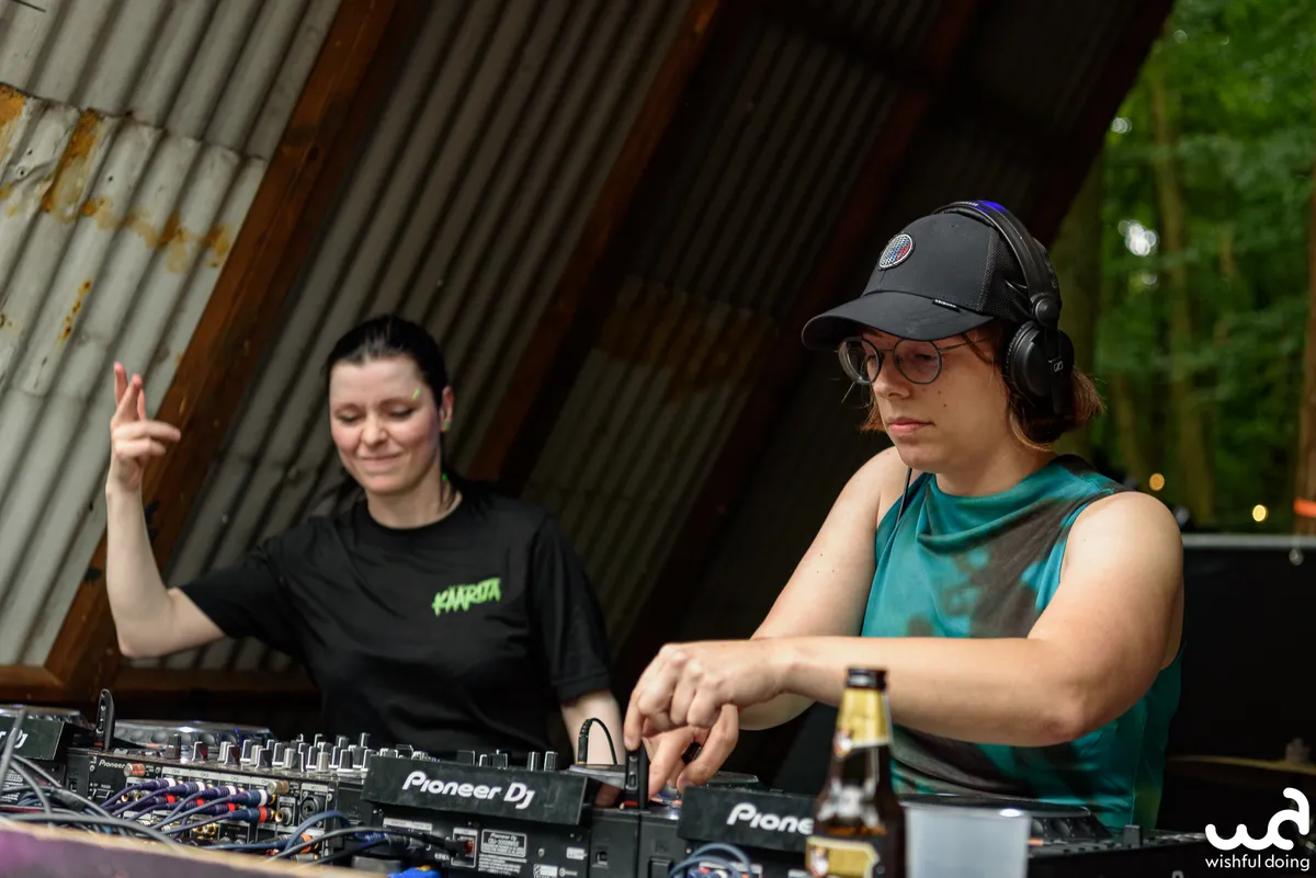 De genrefans staan vooraan bij het DJ meubel, maar de jungle mag nog wel wat meer wortels in de grond hebben. In de loop van de set is er minder aarzeling, zowel van de soundwevers als van de toeschouwers (bijgestaan door literkannen drank). Een dame jongleert ballen bij de frontstage terwijl de DJs hetzelfde doen met tracks. Er zijn opvallend veel koters (wel met gehoorbescherming) aanwezig, gezien de stage tegenover de kinderactiviteiten zit.