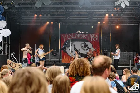 Anders dan anders is het nummer ‘Jouw dag’ vandaag niet alleen opgedragen aan het publiek, maar ook aan de band zelf. Alle bandleden groeiden op in de Leidse regio en bezochten Werfpop al van jongs af aan. Hier zelf spelen was voor hen een jongensdroom. “Daarom is het vandaag ook ónze dag,” zegt Sam van Tienhoven enthousiast.