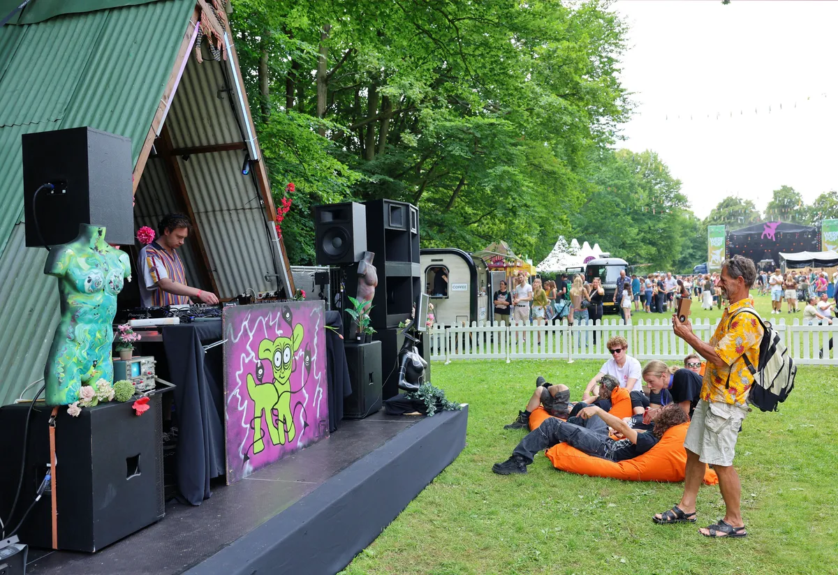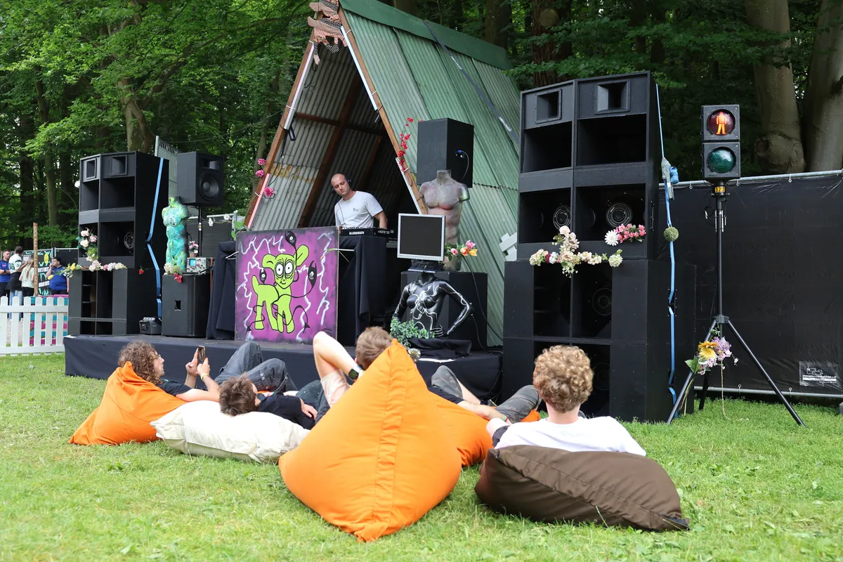 Het Leidse underground radiostation Maxi Radio levert vanmiddag drie DJ’s voor P3, het podium voor lokale smaakmakers op het gebied van elektronische muziek. Radiomakers Cassie Wijle, Bobby Speedo en Kevin Lo laten het publiek, dat hier heerlijk in zitzakken hangt, even bijkomen met een mix van ‘vergeten parels’; dansmuziek die zowel kan verrassen als ontroeren, aldus de aankondiging. Wat we horen, zijn loungetracks met lome beats om heerlijk bij weg te dromen. Opvallend is dat zeker de helft van de toehoorders hier op hun telefoon zit. Is dat omdat de muziek zo saai is? Of is dit gewoon de ideale plek om jezelf even ‘uit te zetten’ in de festivaldrukte? Alle zitzakken zijn bezet, zoveel is zeker. Maar uw recensent krijgt de koffiegeur van de naastgelegen koffiestand in diens neus en kan zich al snel niet meer bedwingen om daar in de rij te gaan staan...