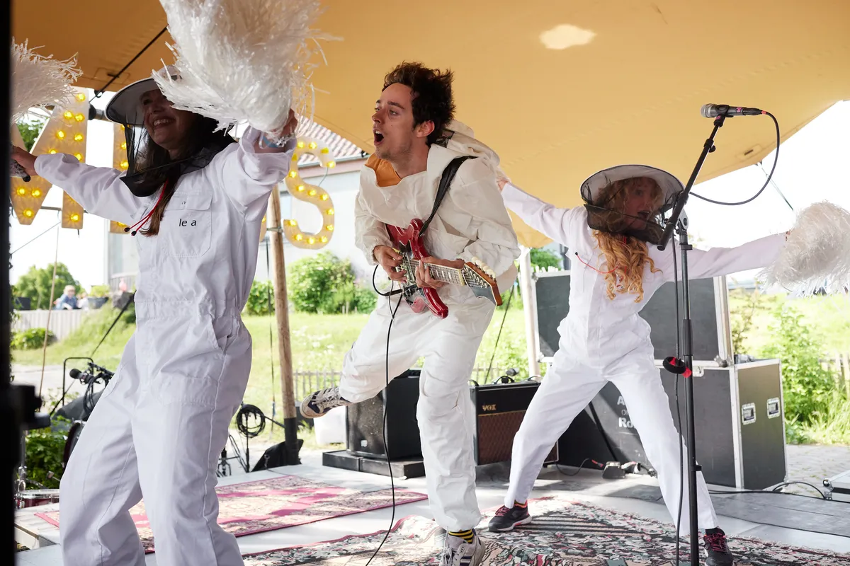 Deze energie is meer dan welkom bij de hieropvolgende act en dat zijn de bezige bijen van Bumble B. Boy, waarbij dit het eerste optreden van de dag dat evenzeer performance act als muziekshow laat zien. Live zijn de intense zang en gitaar, en de twee achtergronddanseressen – tegen het einde de in-het-publiek-vechtende-danseressen. De (absurdistische) punkrock van Bumble B. Boy sluit zoals gezegd naadloos aan op EUT, net zoals, het valt te hopen, hun imkerpakken naadloos aansluiten. Het gerag en geschreeuw van meneer Boy kon op wat vertwijfelde blikken rekenen van de terrasgangers naast de tent, maar het publiek in de tent kan het des te meer waarderen.