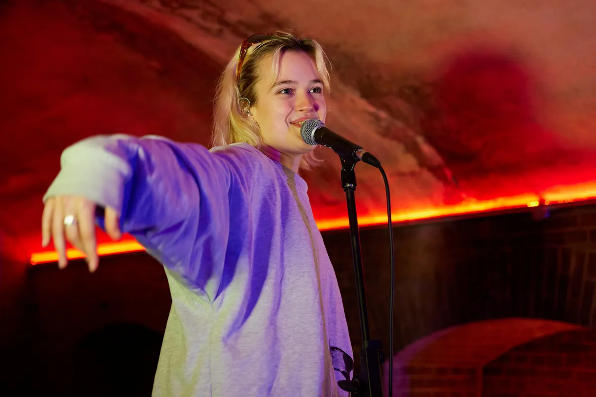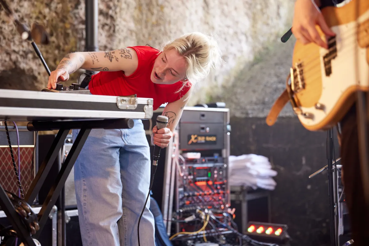 Door enige overlap in het blokkenschema moet er een keuze worden gemaakt voor de volgende act, en deze valt op Lena Hessels, die op het derde podium speelt in de krochten van het fort, bij het waterbassin. Ook deze act is goed gekozen bij het venue, want de nog dromeriger en vooral meer duistere sferen van haar geluid passen perfect bij de door neon verlichte hal waar ze speelt. Dat Hessels al van (heel) jongs af aan op het podium staat, valt goed te zien, met een heel natuurlijk optreden. De producer met zijn Giorgio Moroder-esque looks en beats maakt toch wel het plaatje compleet.