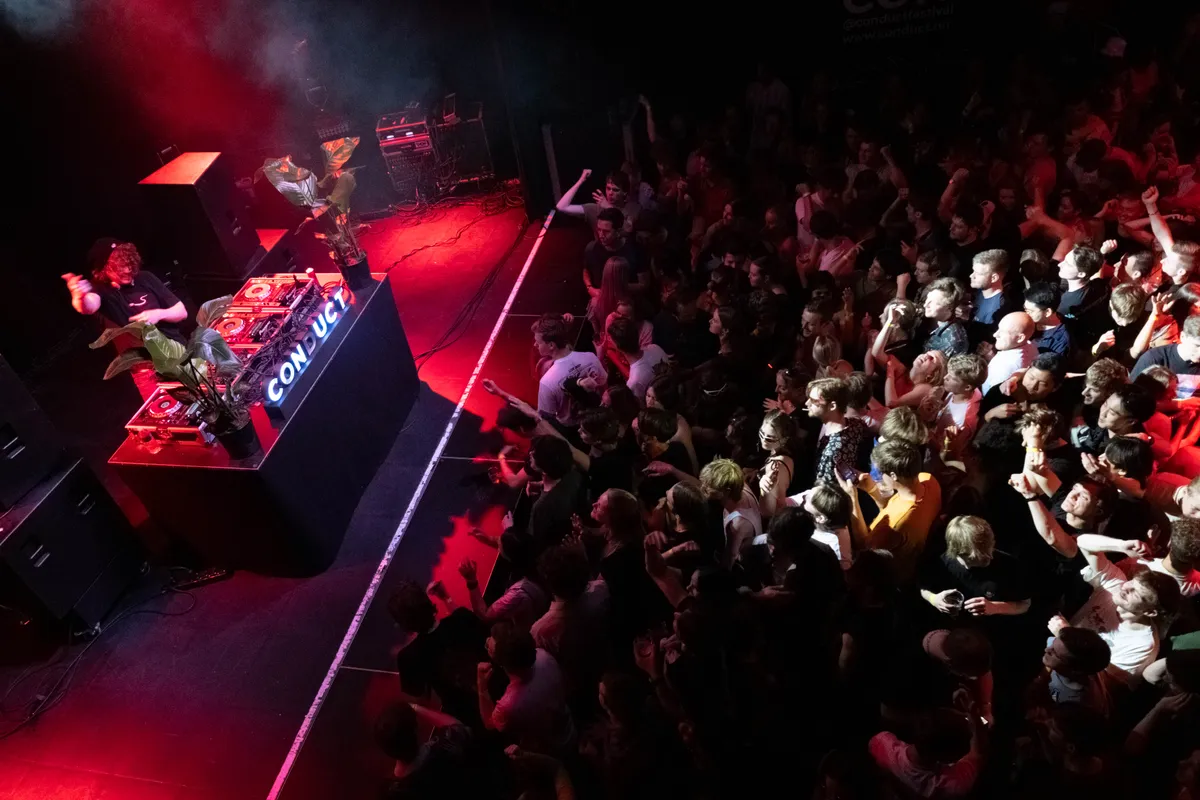 Het belooft een drukke en energieke avond te worden in de Main van Dynamo, de vijfde editie van studentenfestival Conduct is strak uitverkocht. Het elektronische muziekfestival is een initiatief van LUCID, de studentenvereniging van de studenten Industrial Design aan de TU Eindhoven. Ook dit jaar hebben de studenten weer een gewaagde line-up samengesteld met artiesten uit verschillende hoeken, en met bovenaan het affiche de troll ‘n bass-koning: gladde paling.